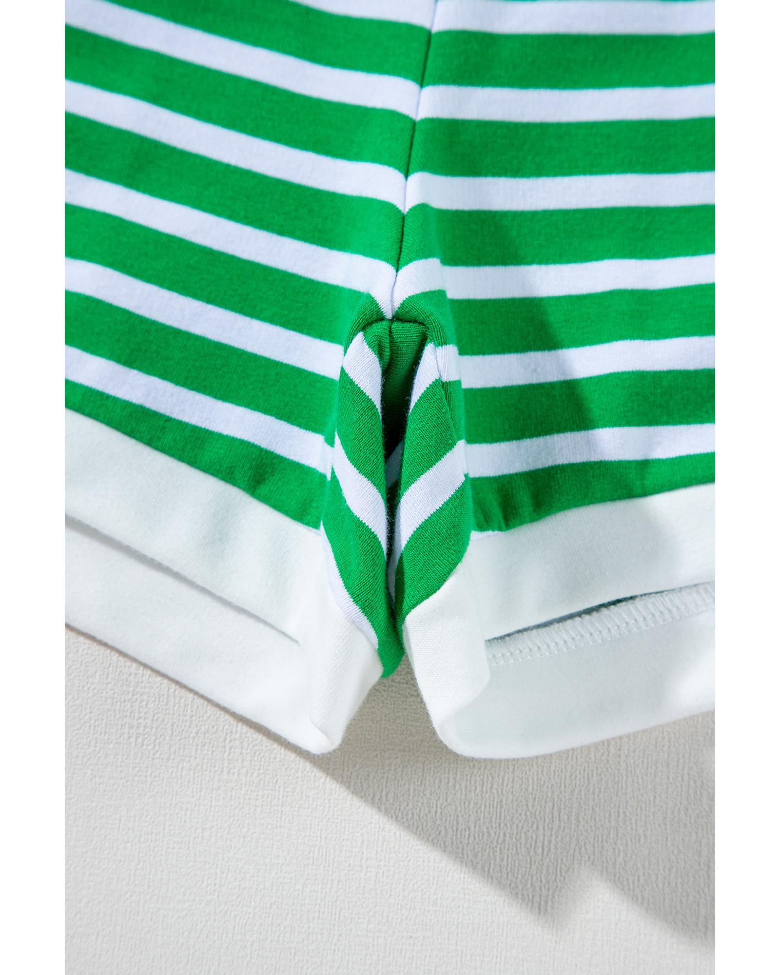 Dark Green Striped Cap Sleeve Tee and Shorts Set - L