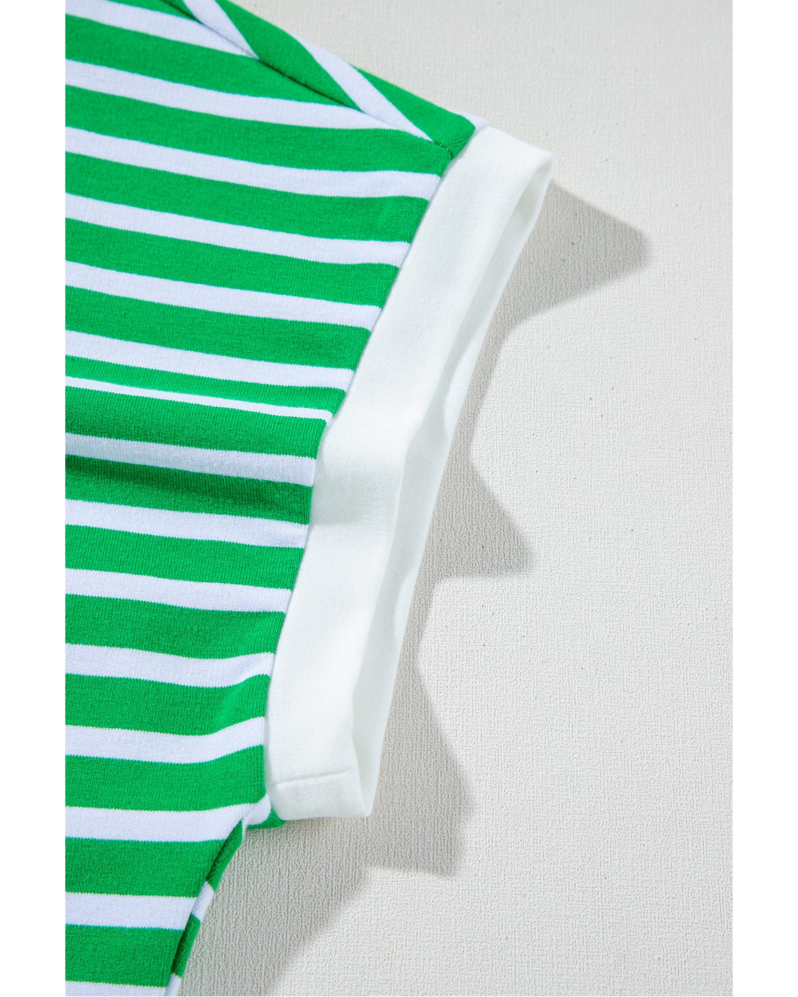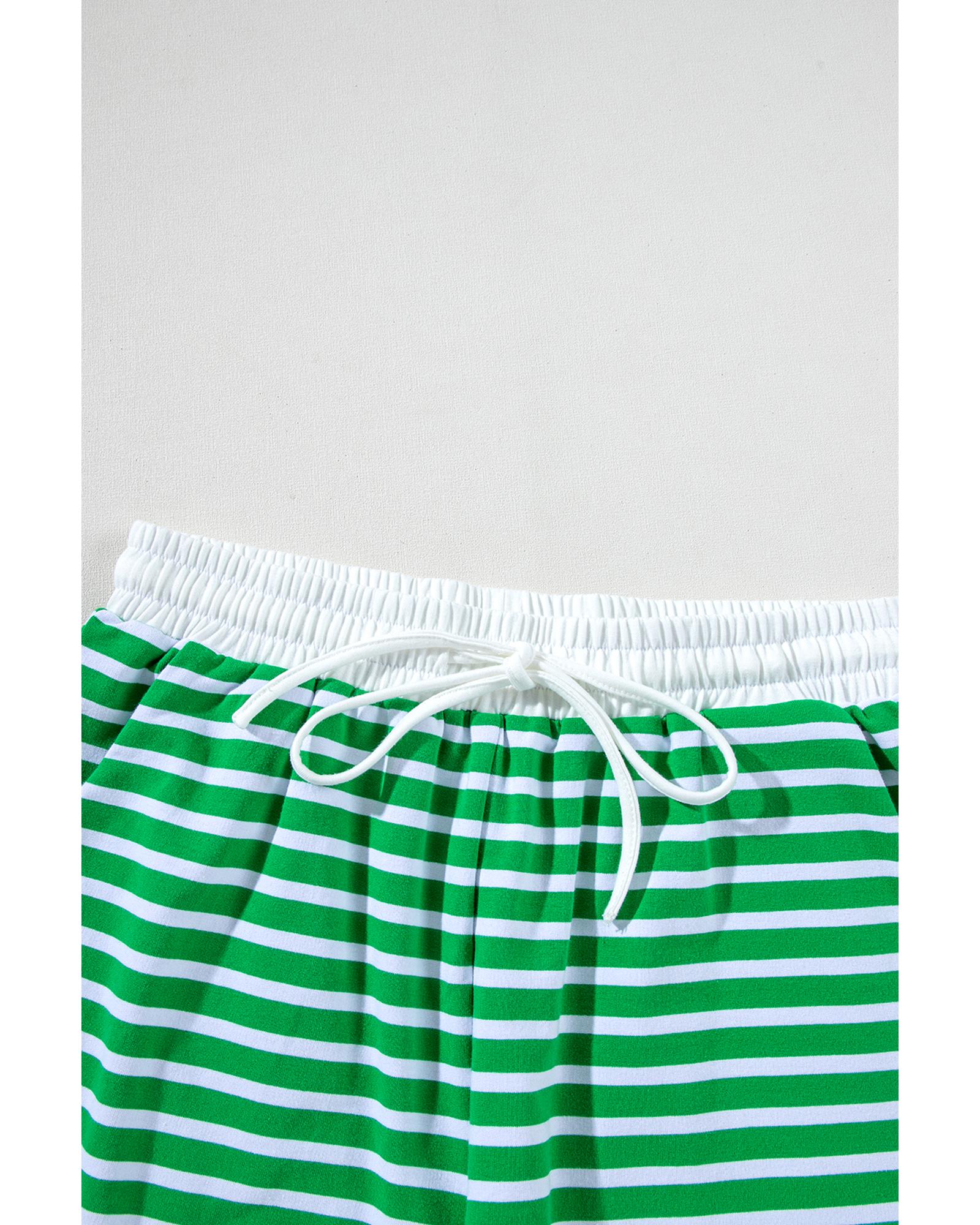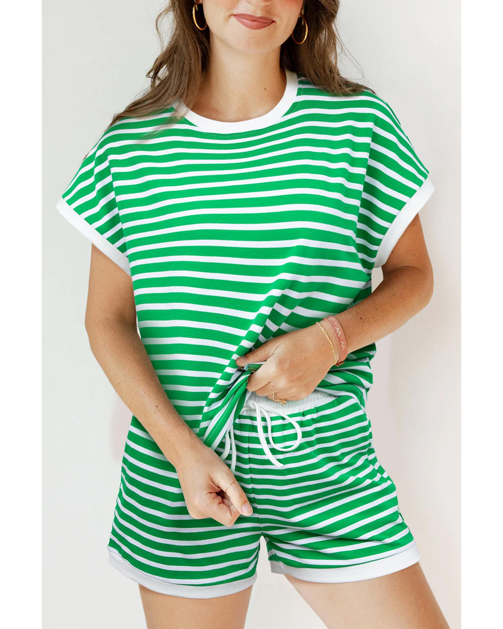 Dark Green Striped Cap Sleeve Tee and Shorts Set – XL