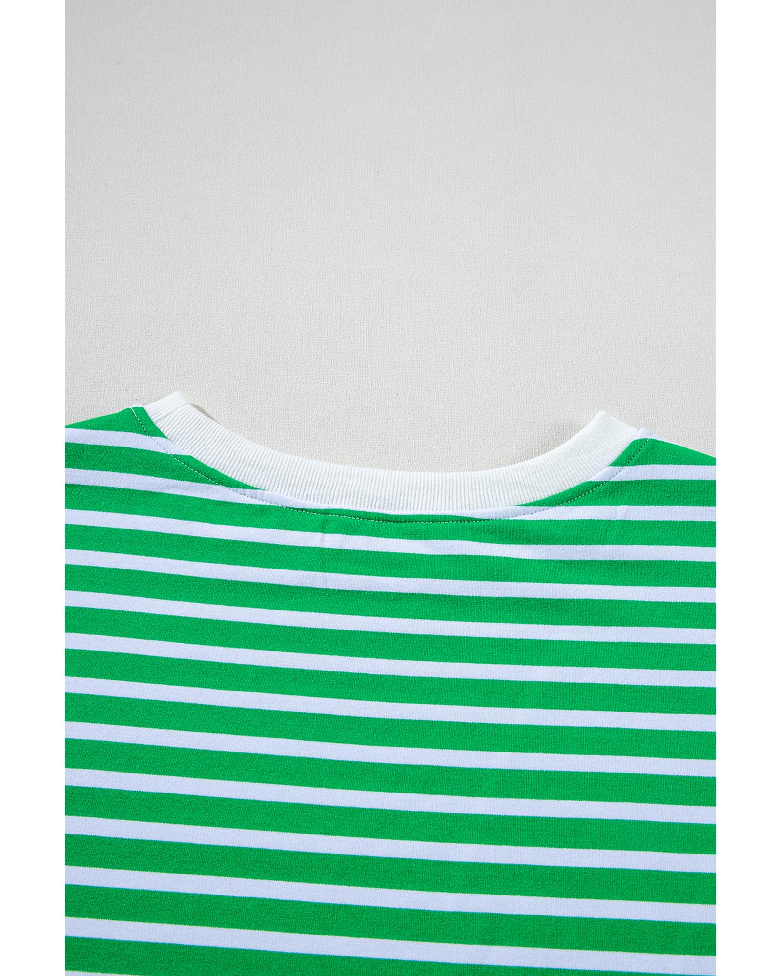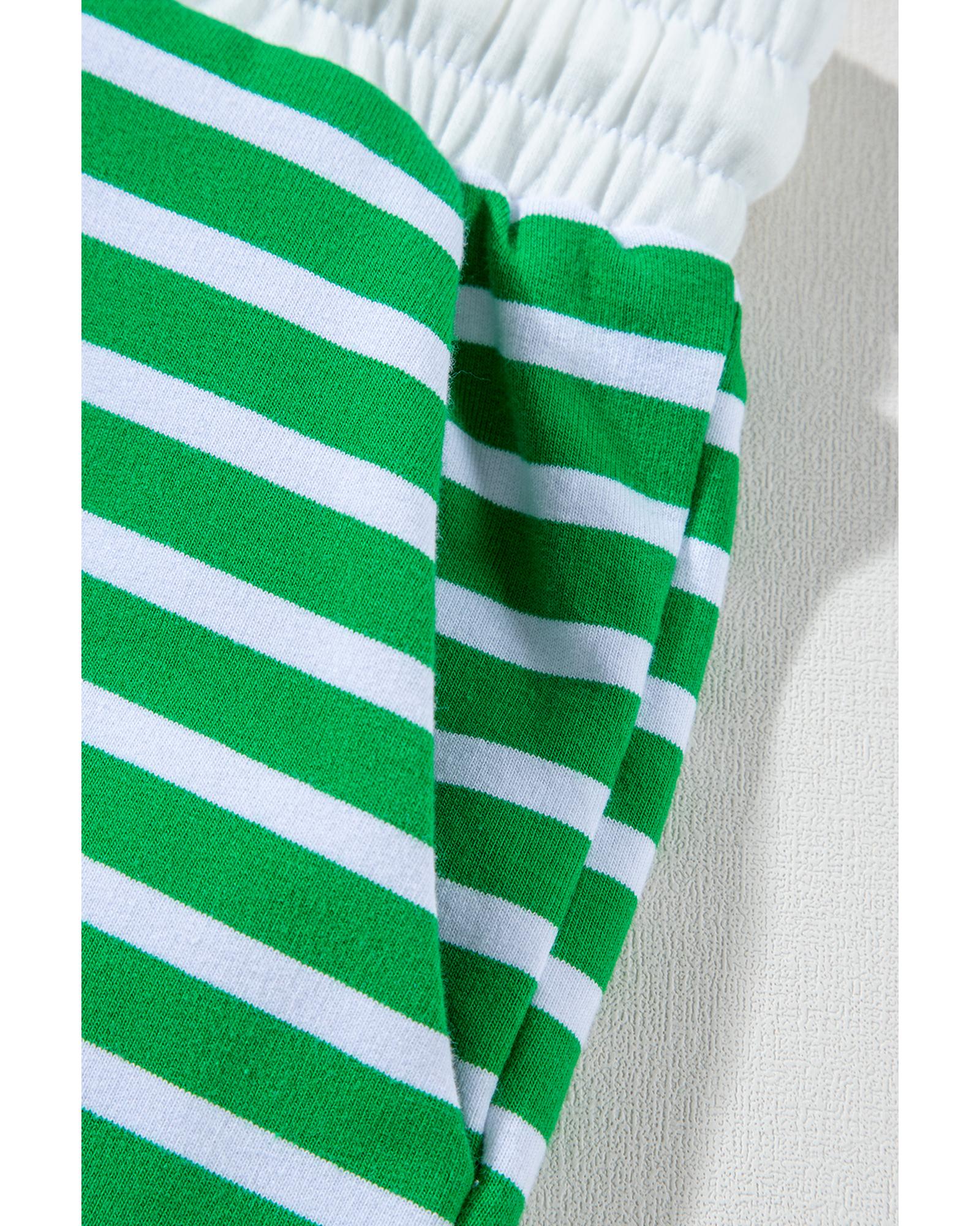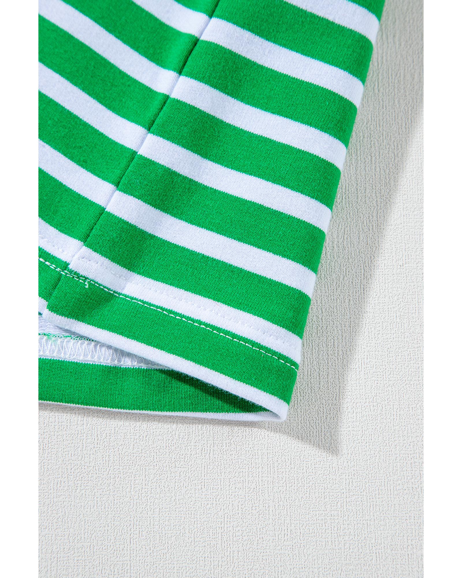 Dark Green Striped Cap Sleeve Tee and Shorts Set – XL