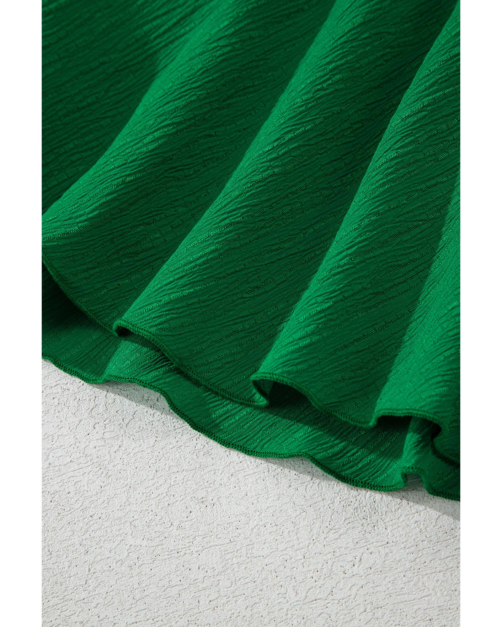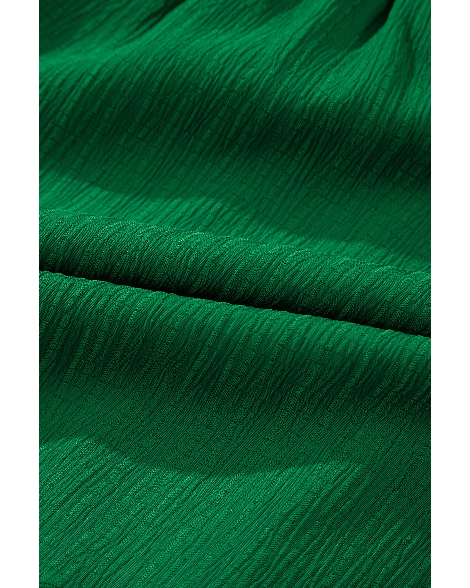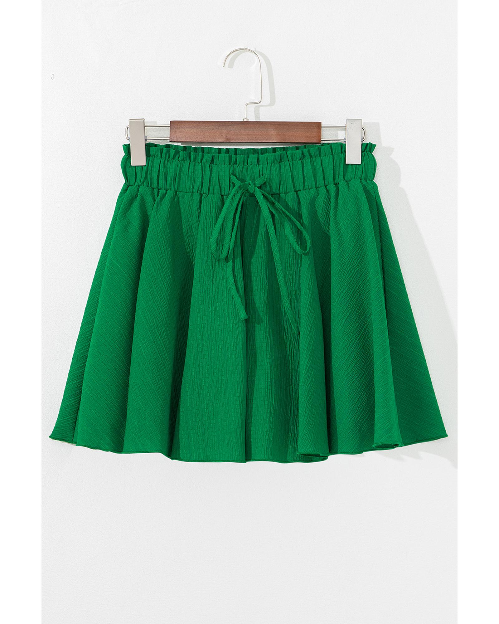 Dark Green Textured Frilled Lace-up High Waist Ruffle Wide Leg Shorts – L