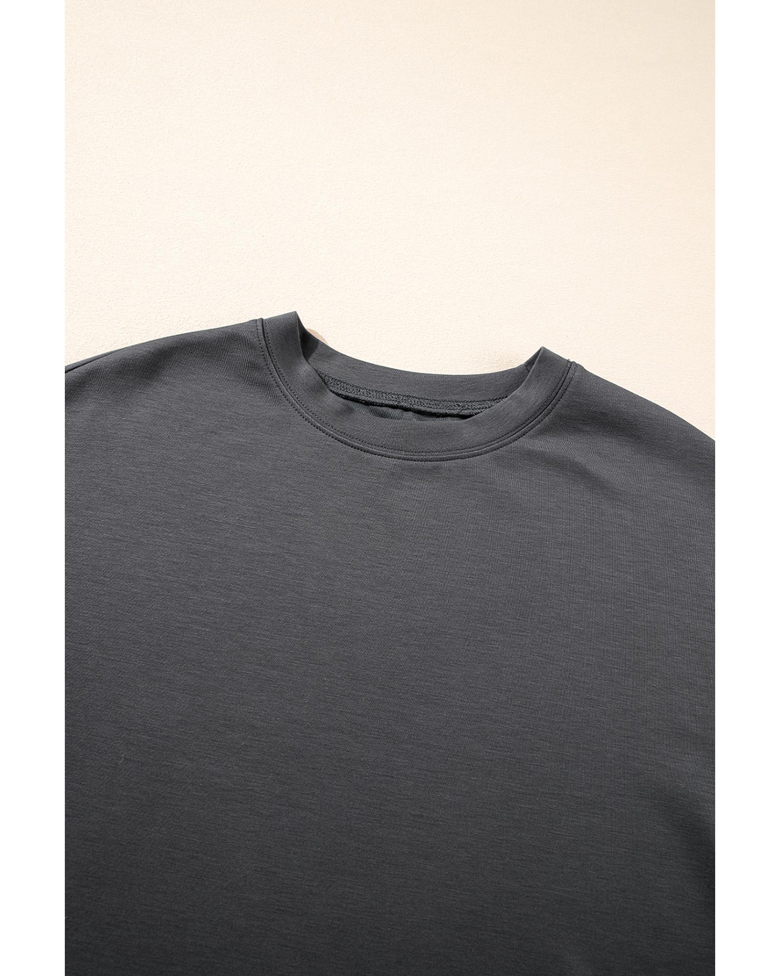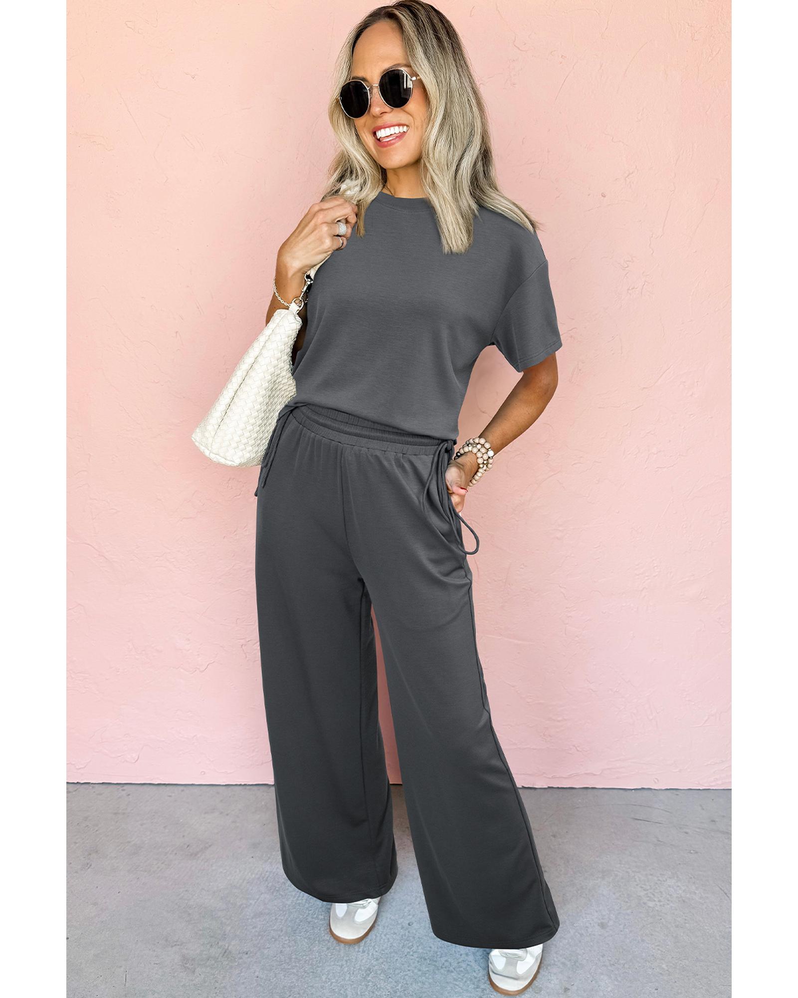 Dark Grey Drawstring Side Crewneck Tee and Loose Pants Set – L