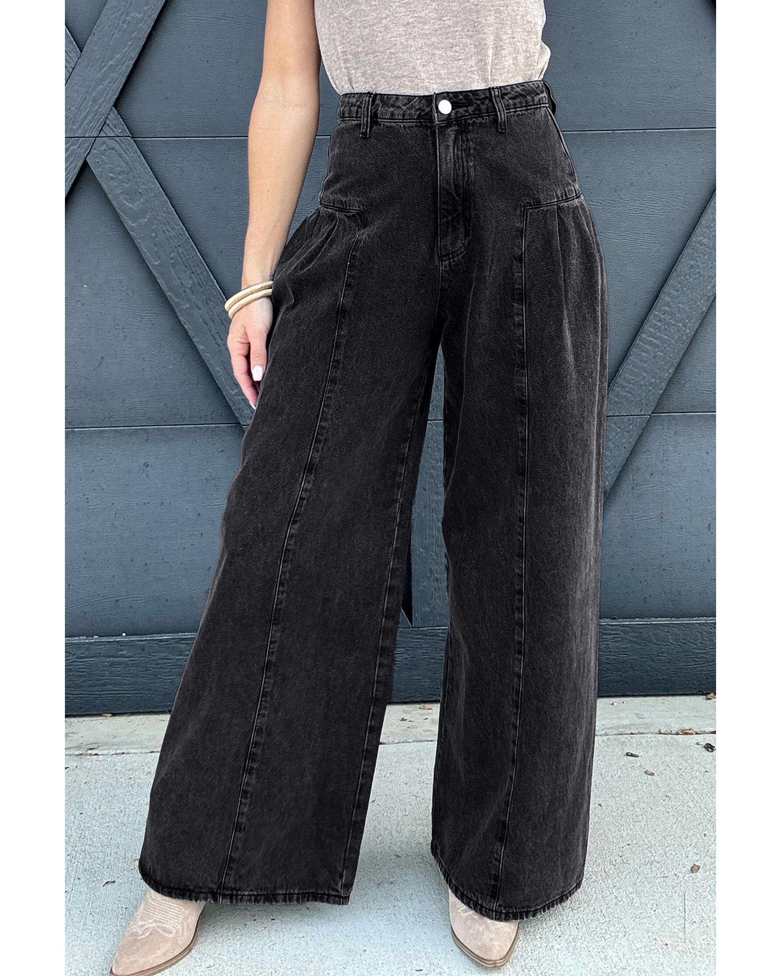 Dark Grey Pleated Wide Leg Mineral Wash Denim Pants – 12 US