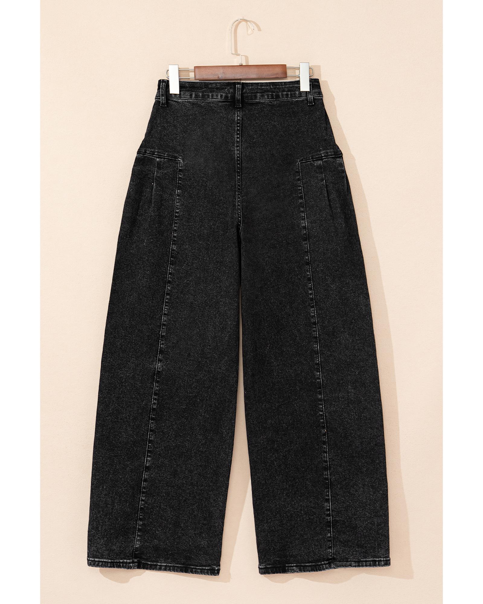 Dark Grey Pleated Wide Leg Mineral Wash Denim Pants – 14 US