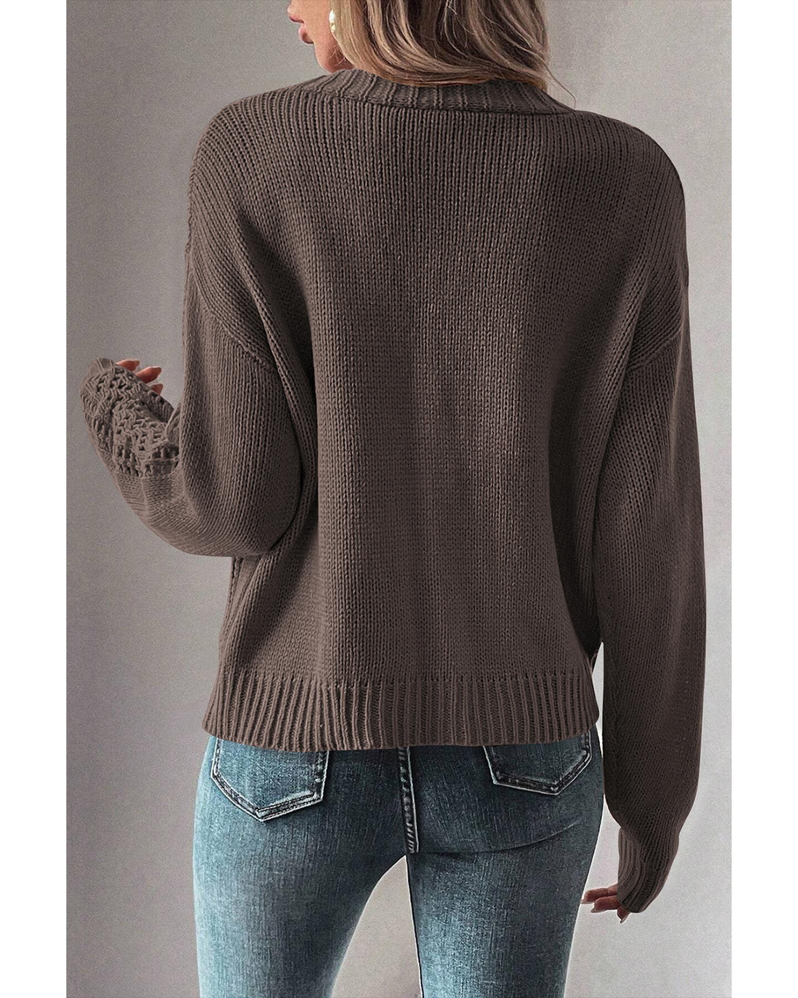 Brown Eyelet Pattern Detail V Neck Drop Shoulder Sweater - 2XL