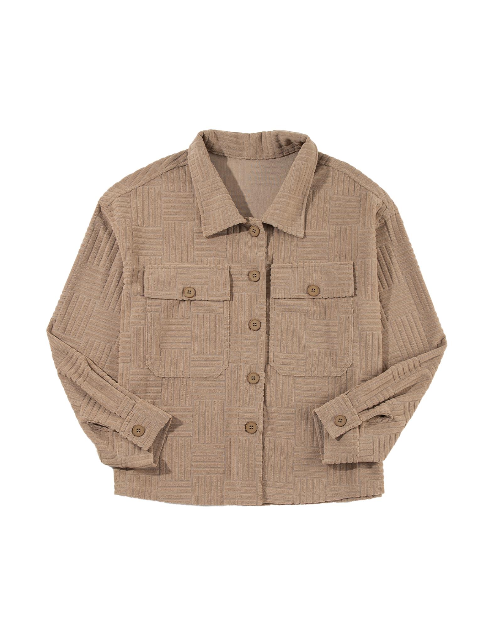 Dark Khaki Textured Chest Pocket Button-up Shacket – M