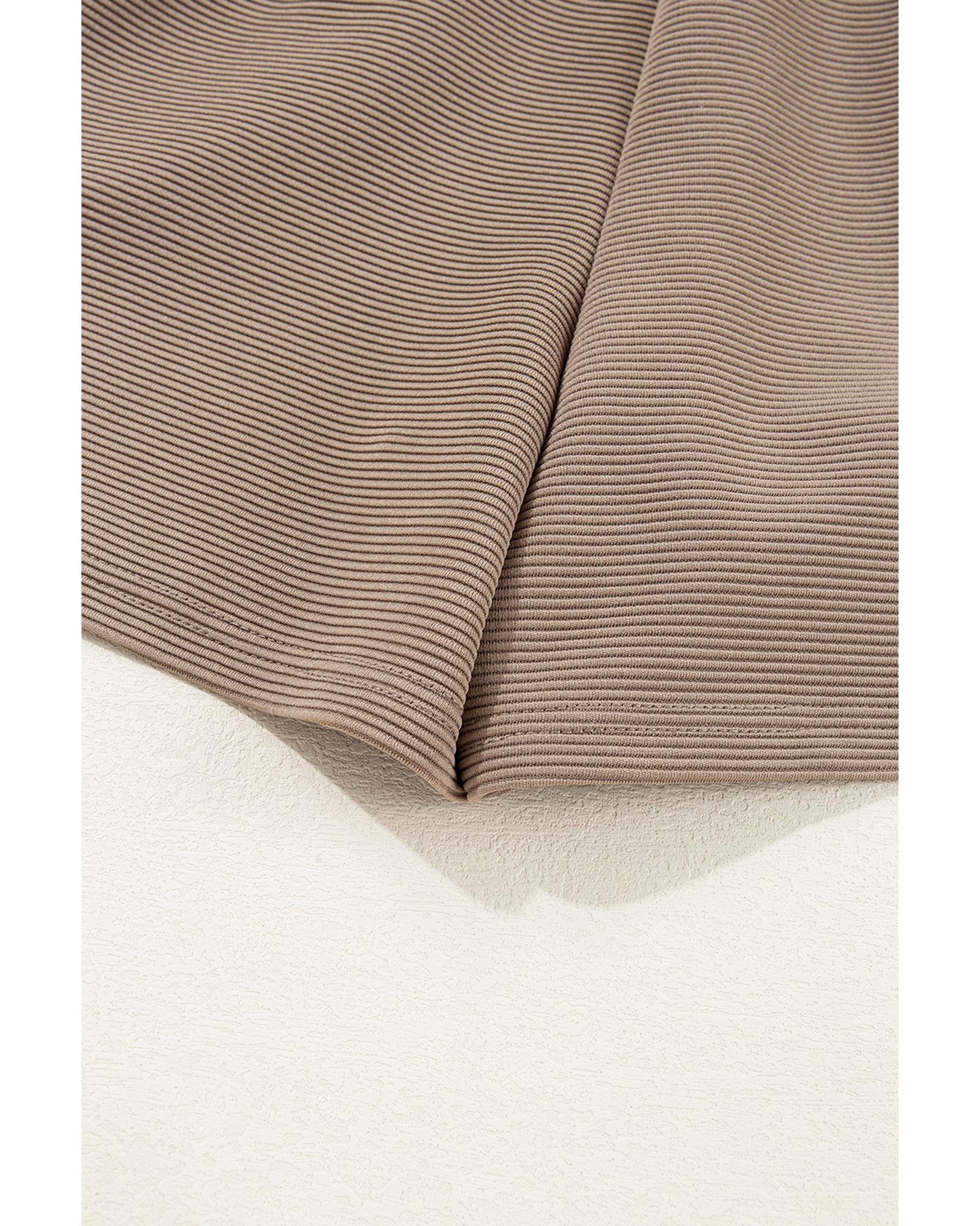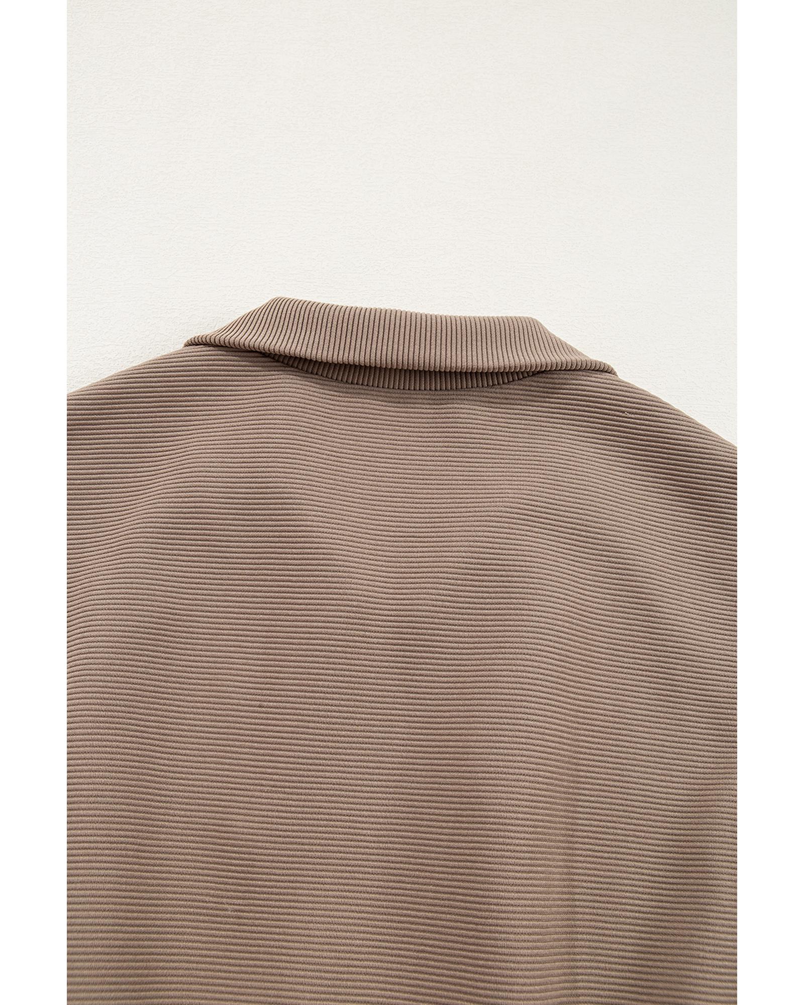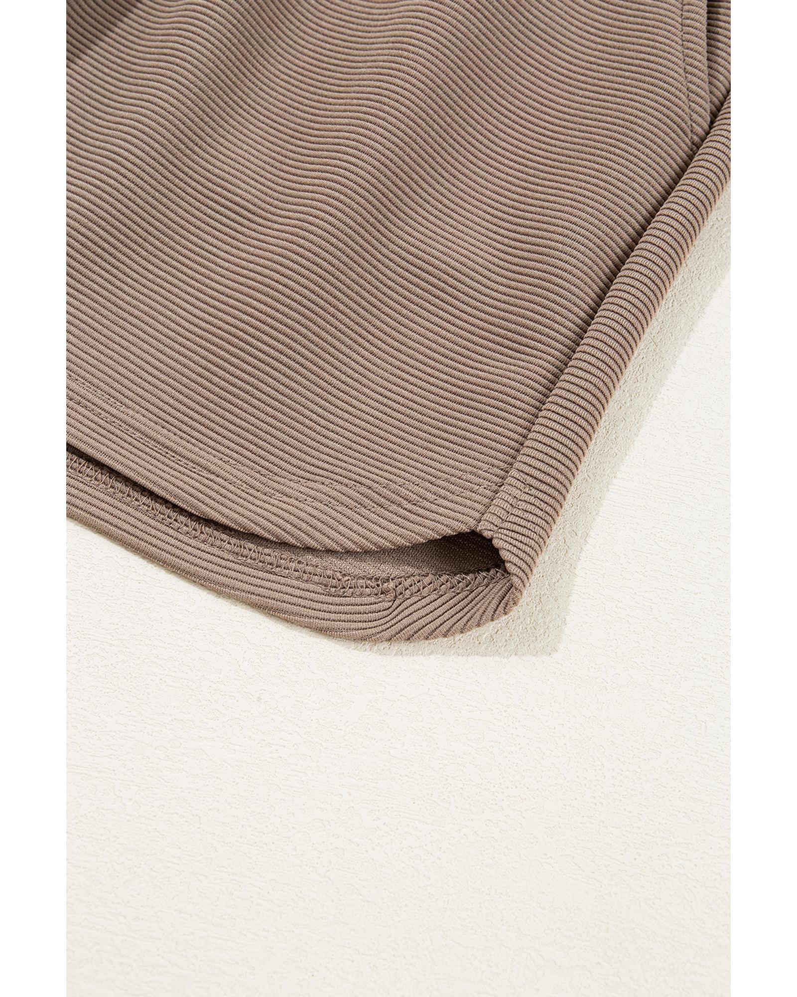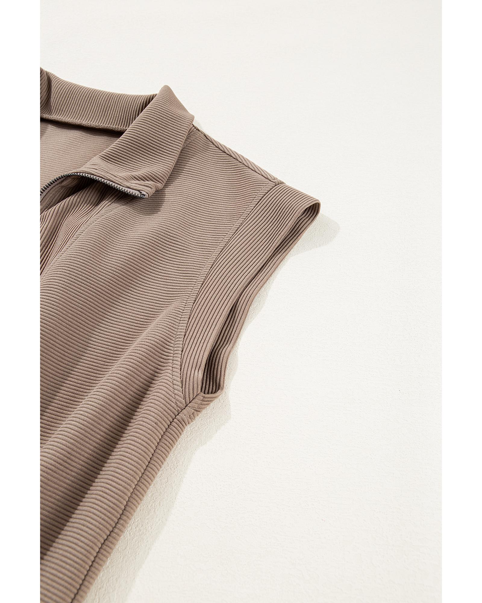 Dark Khaki Textured Short Sleeve Half Zip Drawstring Waist Romper – L