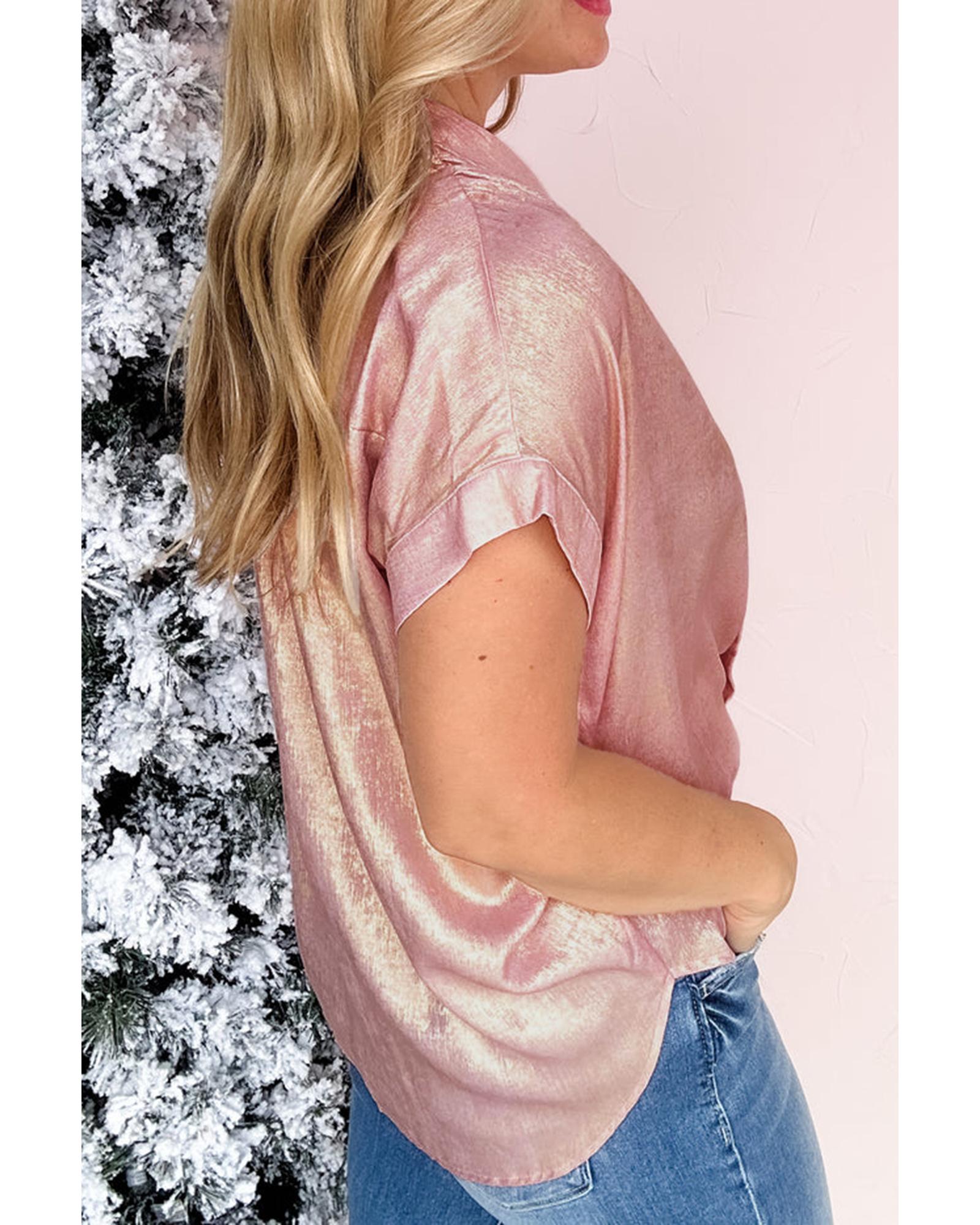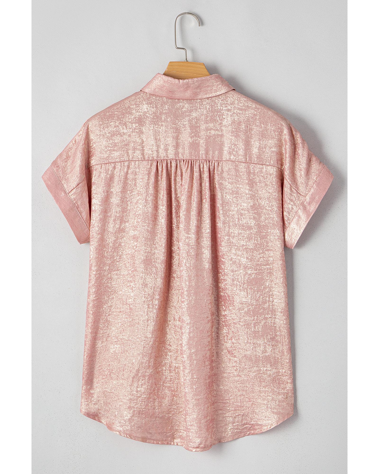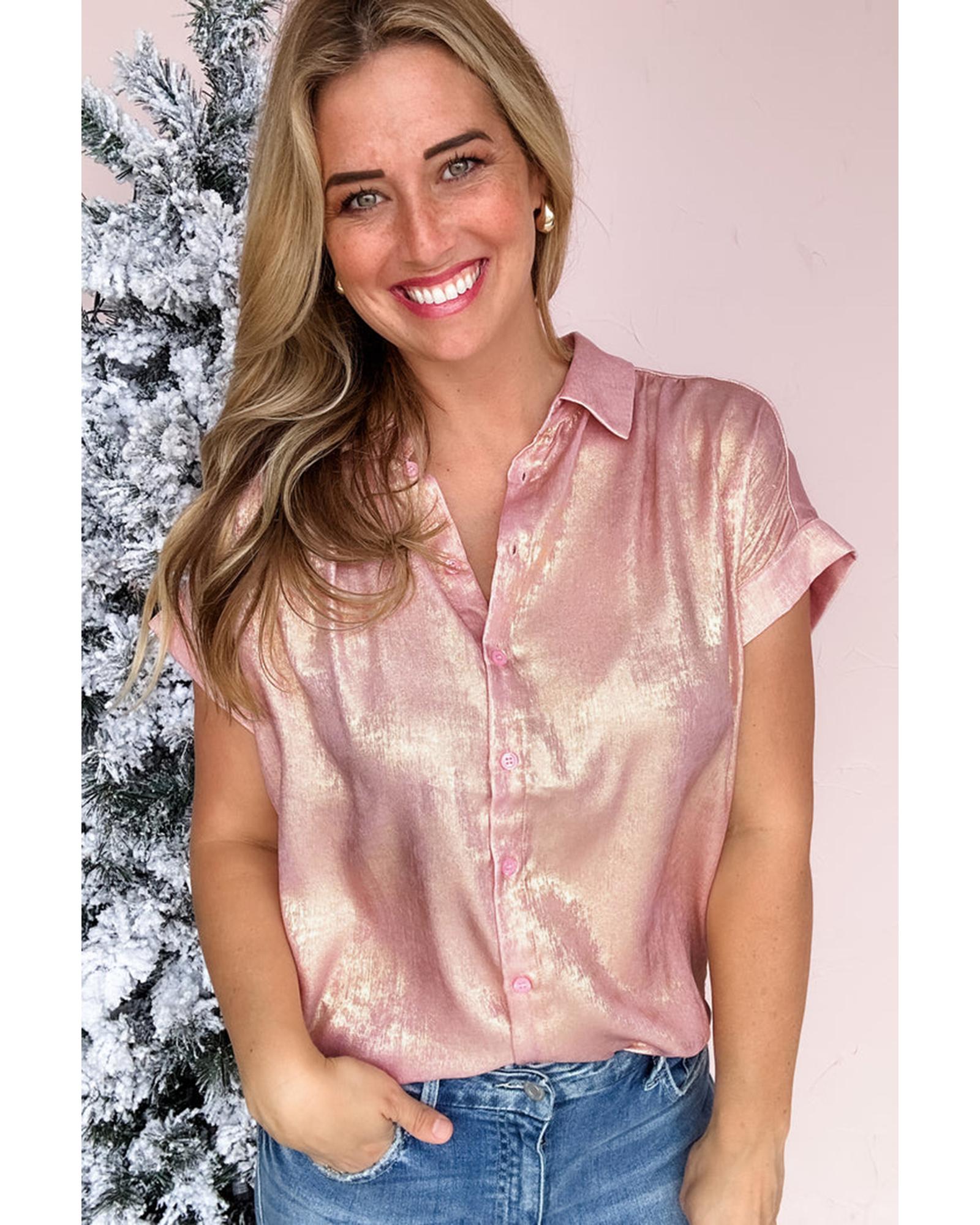 Delicacy Metallic Buttoned Loose Fit Short Sleeve Shirt – M