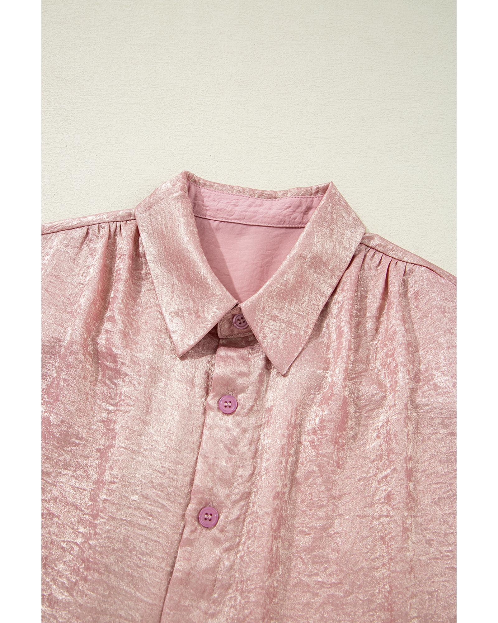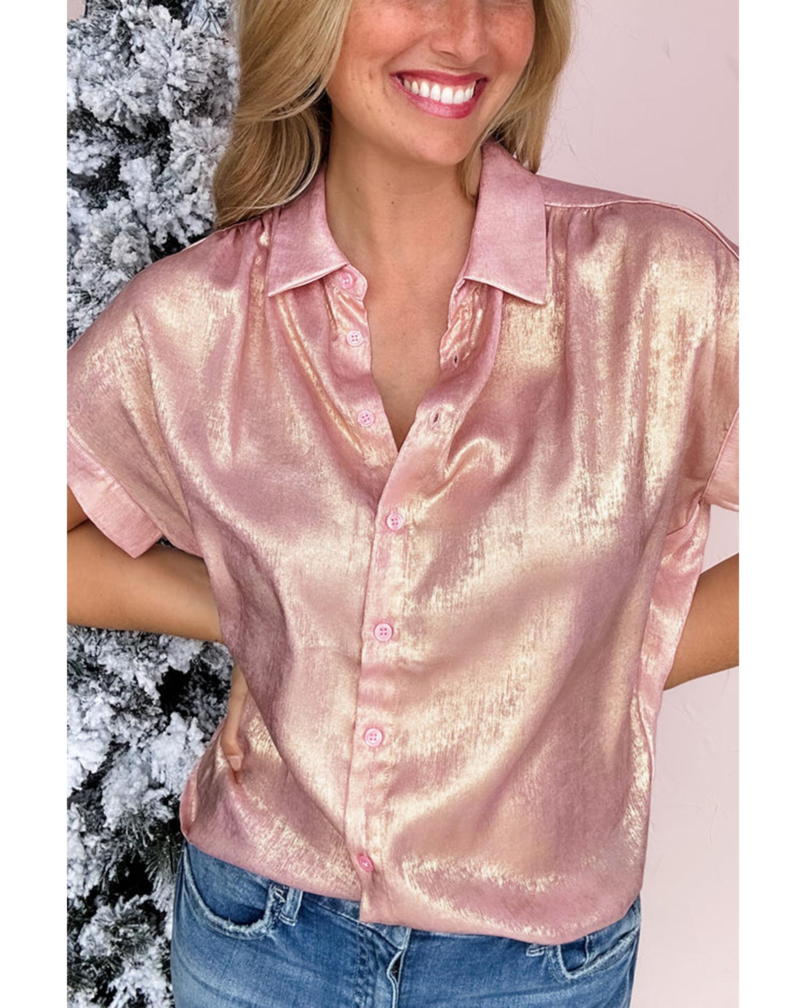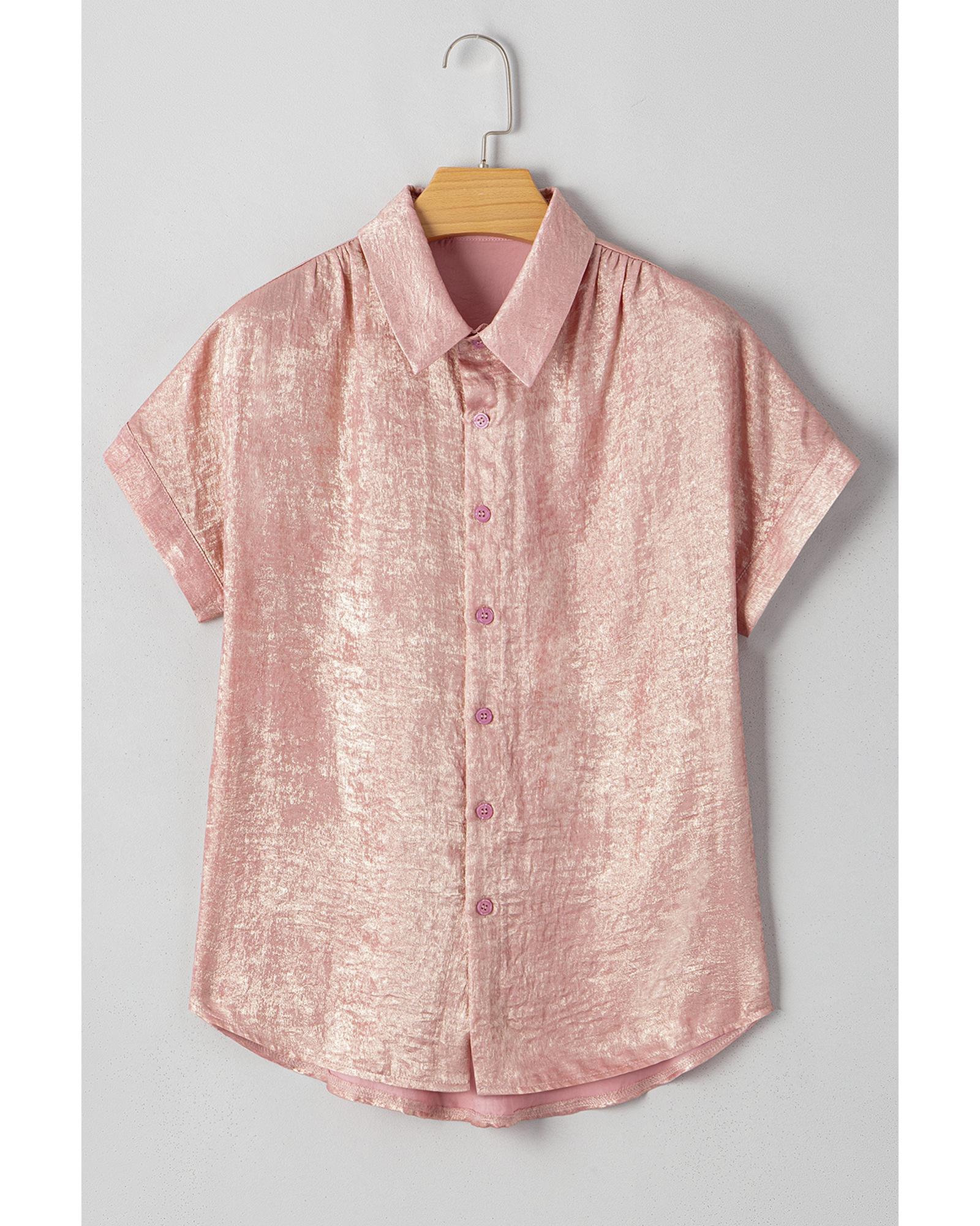 Delicacy Metallic Buttoned Loose Fit Short Sleeve Shirt – XL