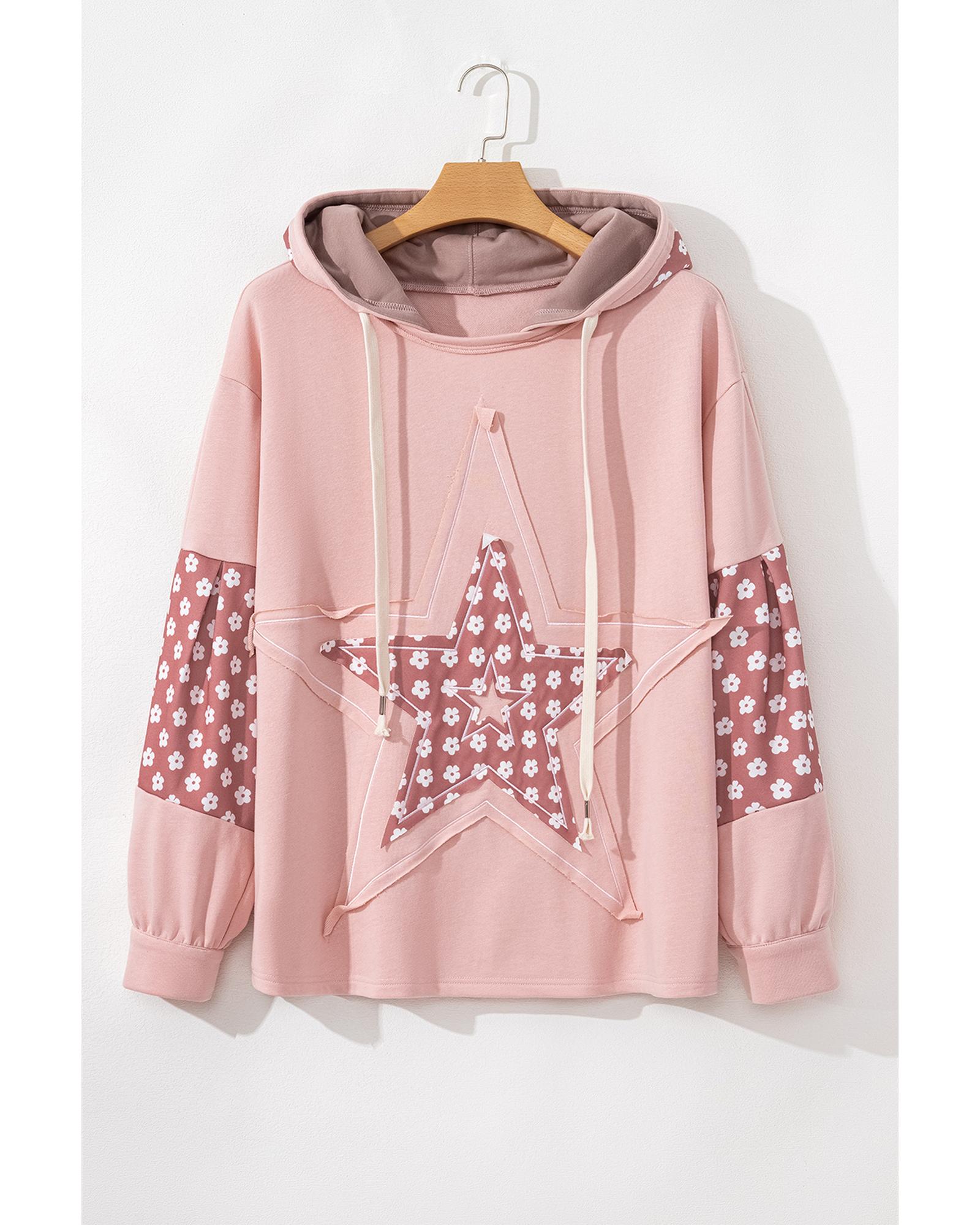Delicacy Star Patch Graphic Floral Color Block Drawstring Plus Size Hoodie – 1X