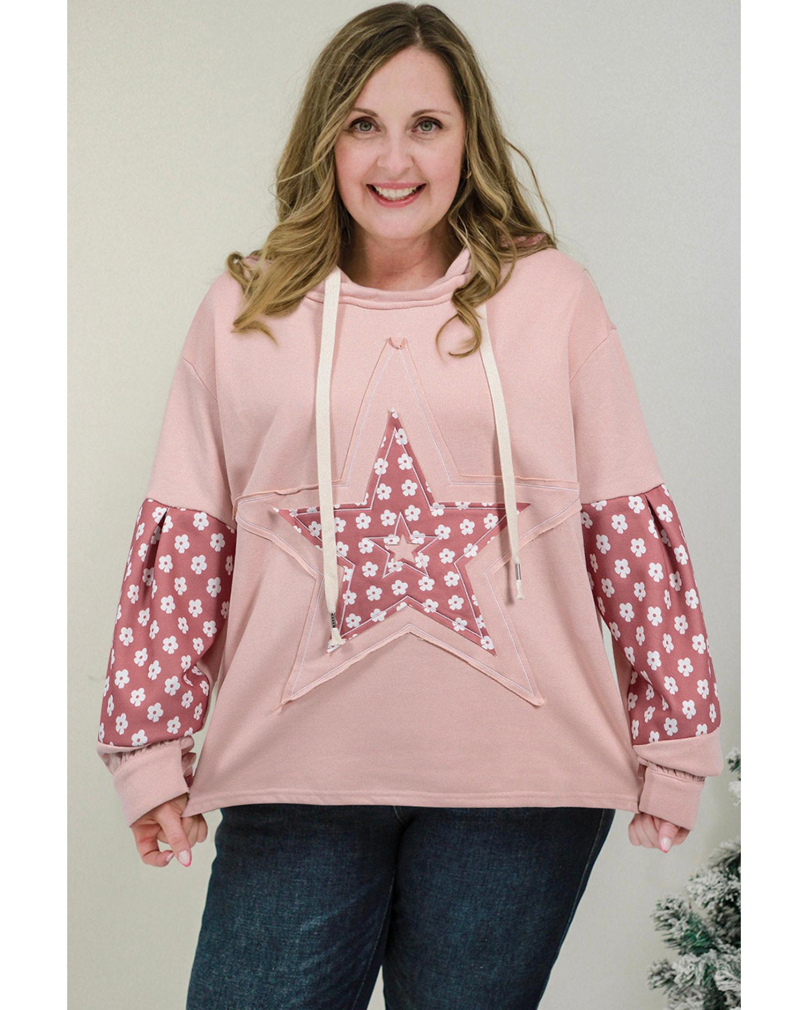 Delicacy Star Patch Graphic Floral Color Block Drawstring Plus Size Hoodie – 4X
