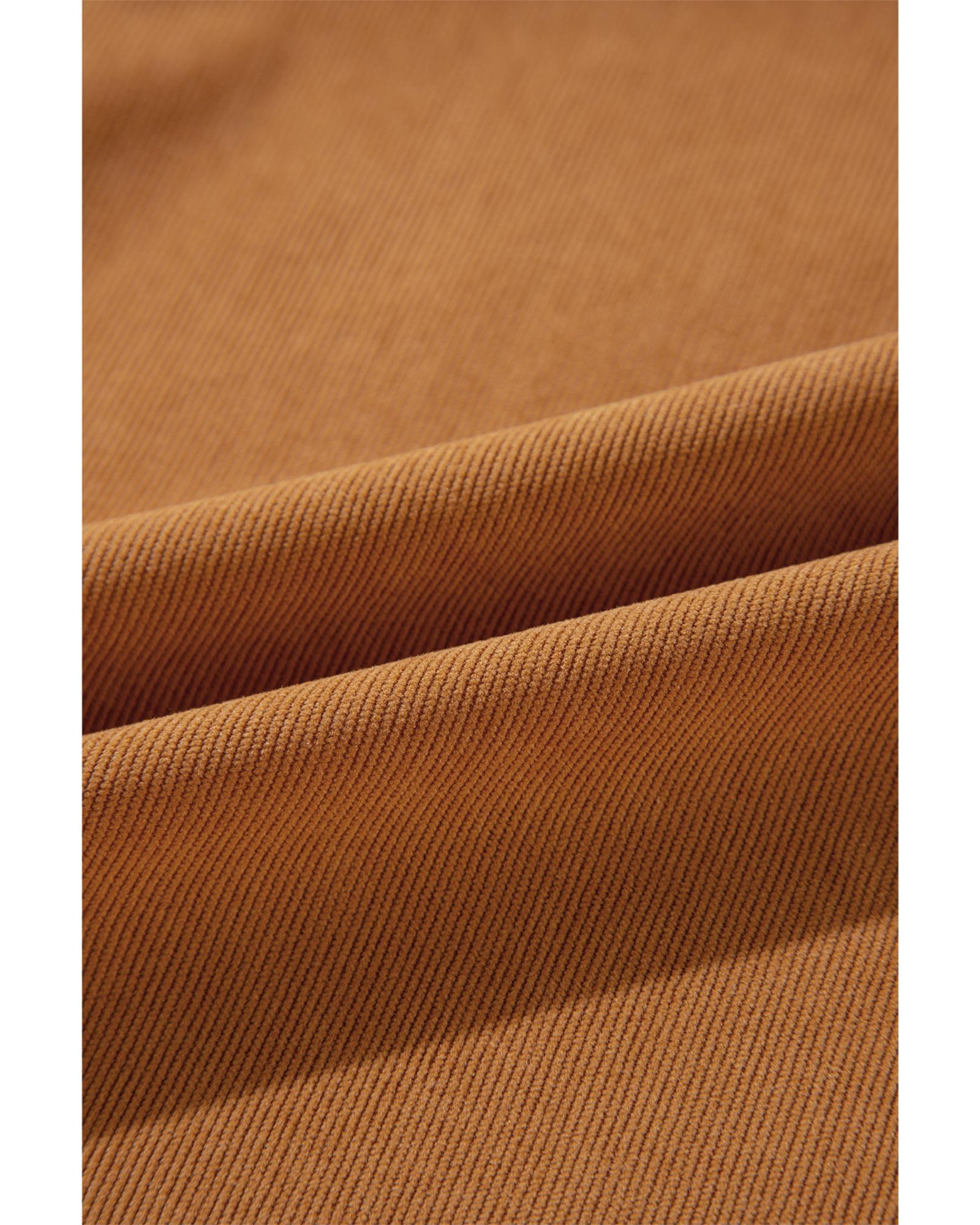 Desert Gold Corduroy Pleated Puff Sleeve Shift Short Dress – XL