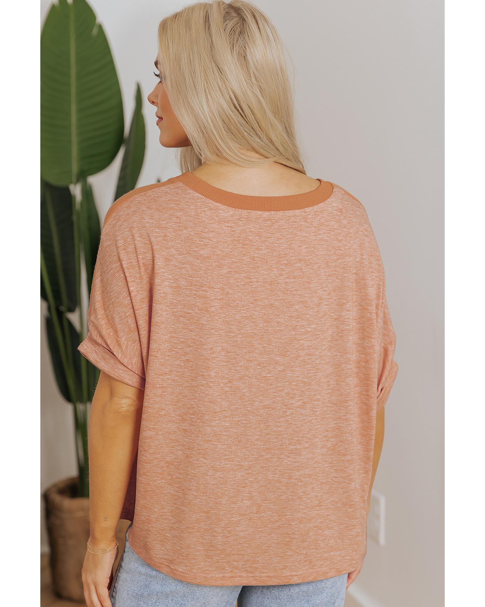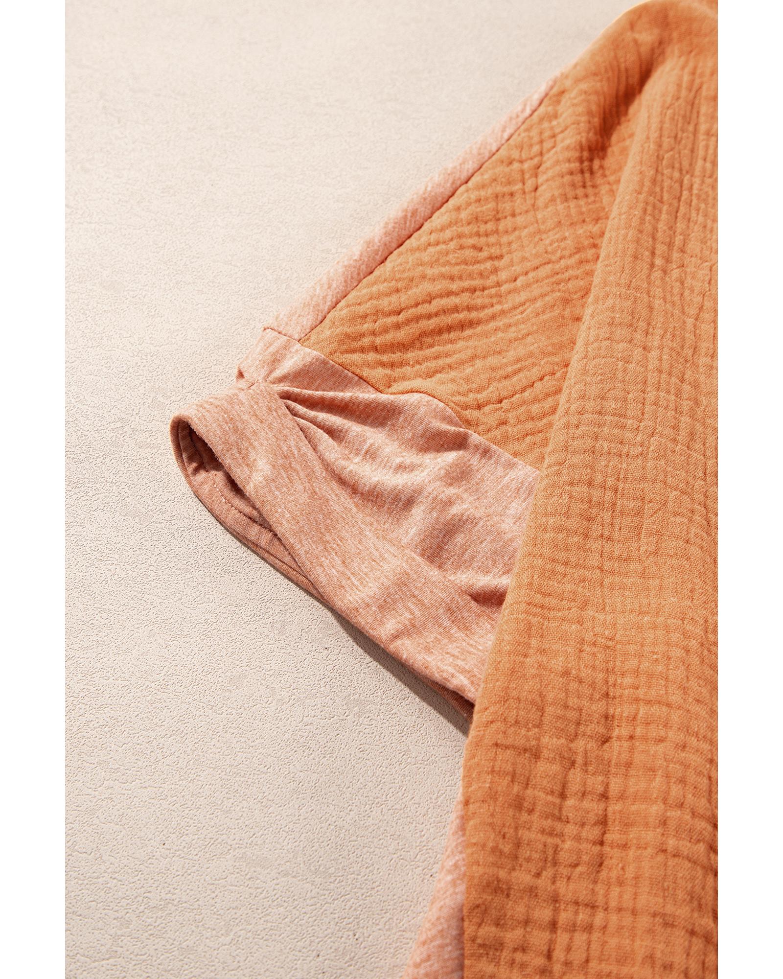 Peach Blossom Corded Colorblock Drop Shoulder Loose Top - XL