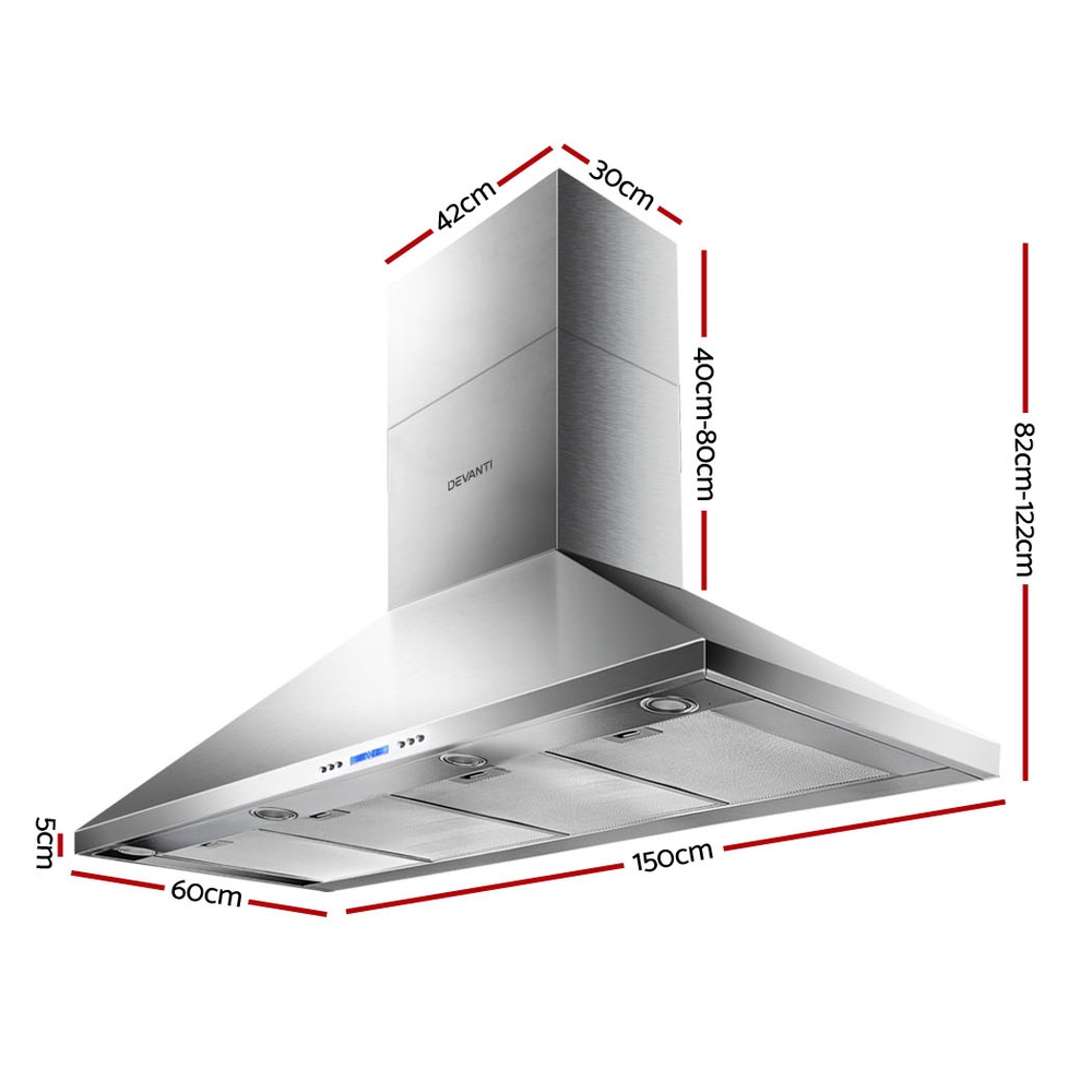 Thick smoke and steam from your cooking. Stifling odours all around. And the hood’s not doing its work in clearing the mess. Yes, it’s the bane of every conscientious chef who wants the cooking environment to be as pleasant as possible. And that wish has come true with our Devanti 1500mm wall mount range hood.
