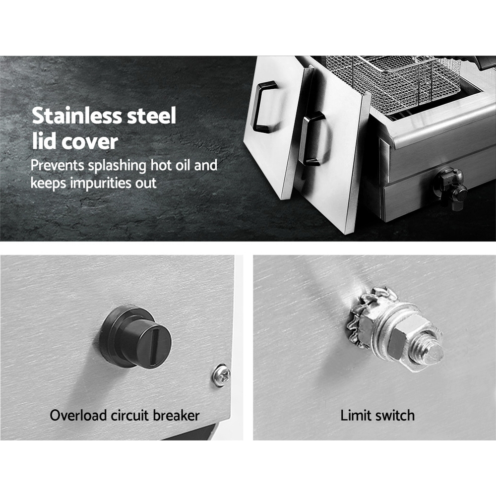 Devanti 20L Electric Commercial Deep Fryer Double Baskets Oil Taps 6000W