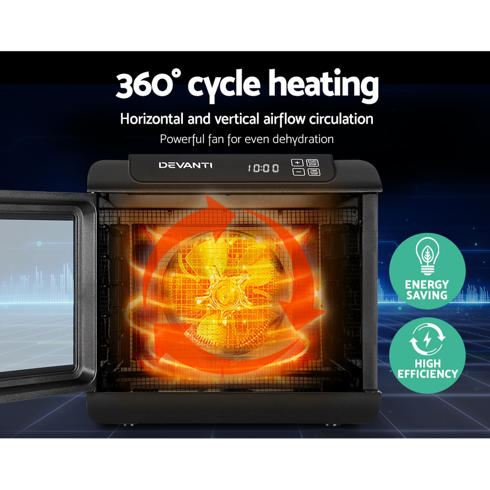 Devanti 6 Tray Food Dehydrators Commercial Beef Jerky Maker Fruit Dryer Black