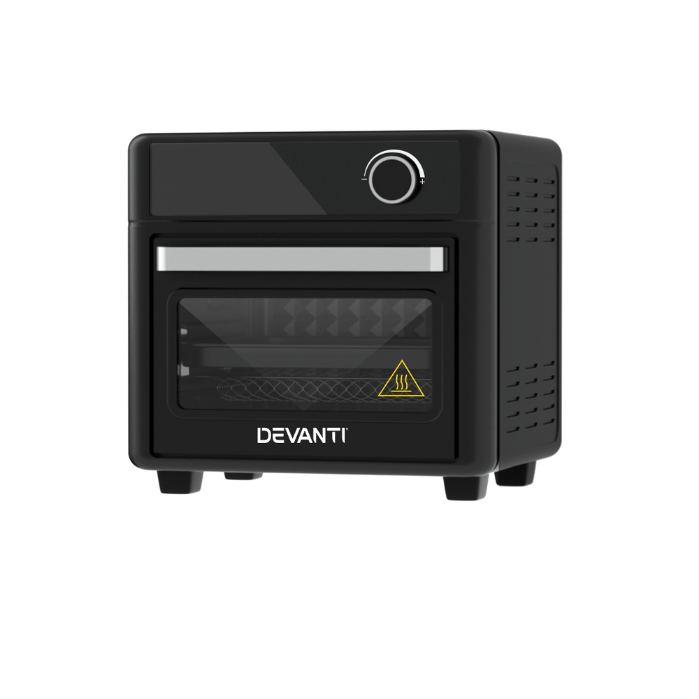 Enjoy your favourite fried foods without guilt thanks to the Devanti 15L Air Fryer Oven. With its smooth and stunning sleek exterior, the Devanti Air Fryer turns ordinary food into extraordinary dishes thanks to its exceptional cooking abilities. Five stainless steel heating elements plus 360-degree heat circulation thanks to the powerful fans ensure your food is cooked thoroughly and evenly. The 15L capacity is suitable for a full set of meals from sides to mains. 12 cooking presets help you cook your ideal meal to perfection every time. Better still, all this wonderful cooking is done without a drop of oil and is as delicious and succulent as your favourite fried treats. Choose the time, temperature and cooking preset with the easy-to-use LCD touch control panel. The tempered glass viewing window and interior light make it easy to check your cooking progress. It also features an automatic shut-off switch, a cool touch handle, a heat shield vent, and non-slip feet for safety. Most importantly, each component is easy to clean, so you can get dinner sorted and cleaned in no time. Comes with an additional wire basket, wire rack, non-stick cooking pan and baking tray. Get yours today and see the benefits of fat-free cooking!