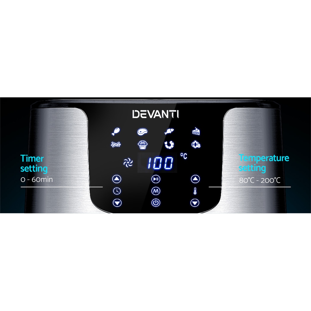 Devanti Air Fryer 7L LCD Fryers Stainless Steel