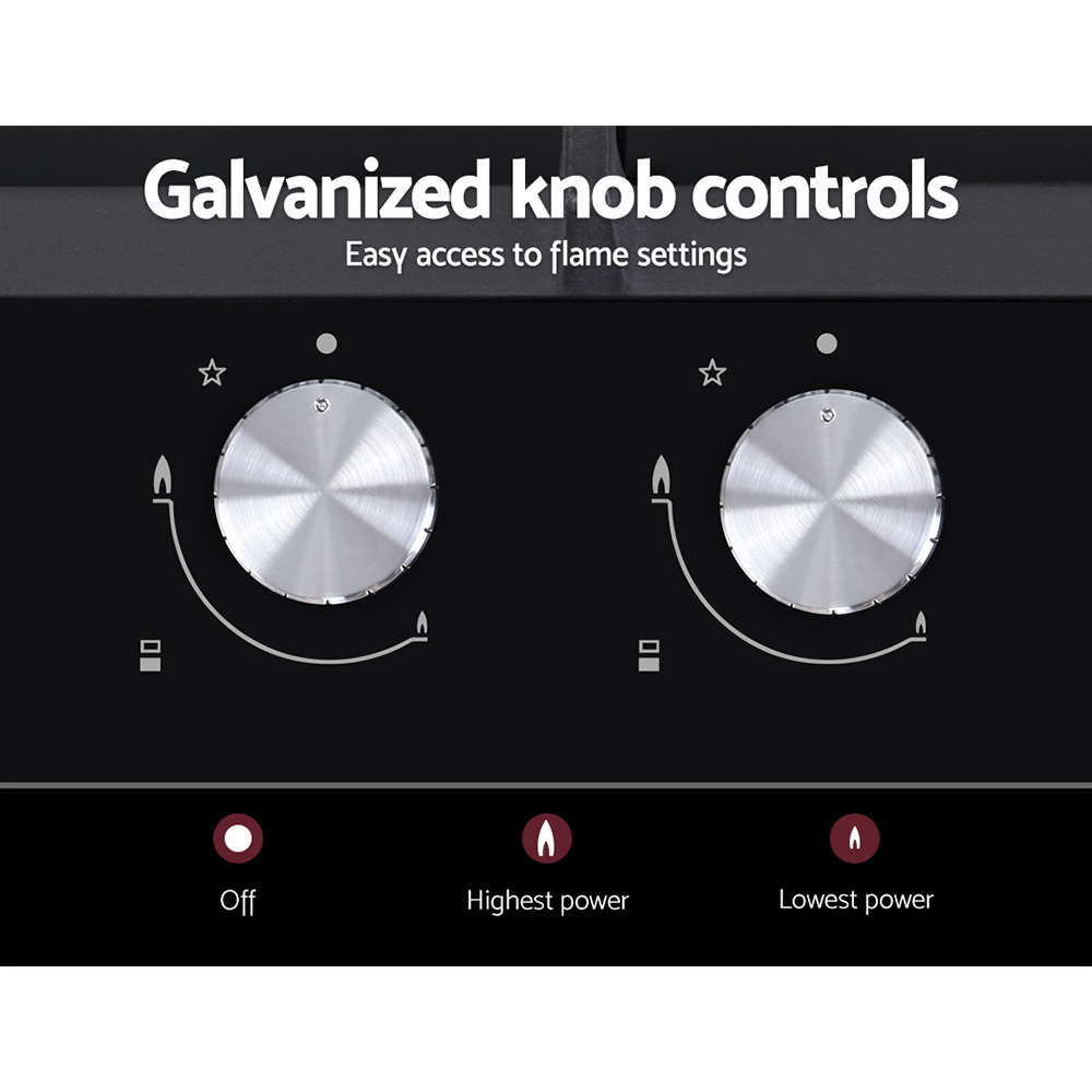 Devanti Gas Cooktop 30cm 2 Burner Black