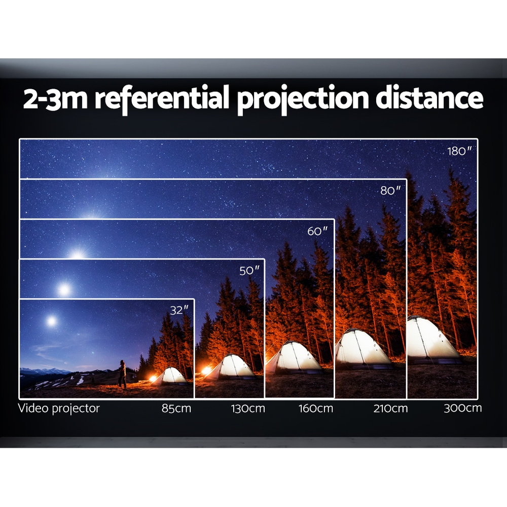 From the small screen to the big screen, now you can enjoy epic entertainment with our Devanti Video Projector. With its ultra-expansive colour gamut, the projector delivers crisp clear images with more brilliant colours to give you the best projection experience. The projector is compatible with 1080p and 4k, so you won’t have to compromise on quality. Using 2.4G Wi-Fi connectivity, our video projector effortlessly supports screen mirroring from your Phone, Pad, smartphone, tablet or laptop, so you can stream content cable-free. It features a built-in speaker for clear sound, electrical zoom by remote so you can get a closer look, and a 360-degree flip for flexible viewing. For even more entertainment value, the projector includes HDMI, USB, AV and audio ports for fast connection to multiple devices such as external speakers, game consoles and hard disks. Get the home cinema experience and order today! Include remote control and additional AV audio and HDMI cables.