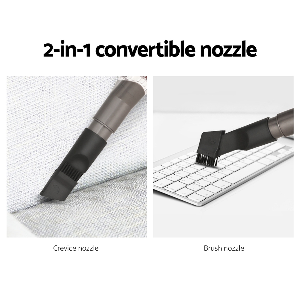 For the ultimate in easy vacuuming, our Devanti Handstick Vacuum Cleaner always makes for efficient cleaning. The powerful 500W 33,000rpm motorised head has steady suction power for a thorough clean. Its pivoting head tilts and swivels, and the included 2-in-1 brush and crevice nozzle can be fitted for any surface or space. Its cable design allows you to vacuum continuously. The generous 3.8m cable lets you reach every corner and you can convert to handheld mode within seconds. All collected dirt and debris pass through a washable and reusable HEPA filter that eliminates up to 99.97% of dust and allergens. Other features include an extendable handle and a one-click design to empty the dust container. Join the cleaning revolution and enjoy hassle-free vacuuming with a Devanti Handheld Vacuum Cleaner.