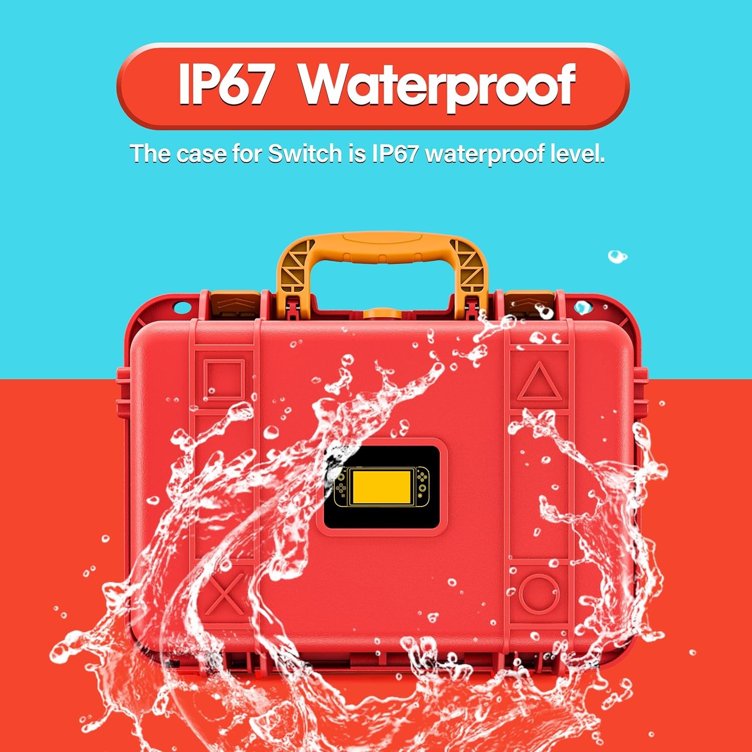 About this item 【TravelStorage】DEVASO Suitcase for Nintendo Switch is perfect for travel and home storage, Specially designed for Nintendo Switch system more portable.The case size is 13.1*10*5.5 inch, the weight is 3.77 Pounds, more portable to take out and travel.Don’t be worry will lost the accessories any more. 【Strong Protection】The out of case is made of ABS material,The shell is strong enough to prevent the collision, scuffing and even falling.The case for Nintendo Switch inner is high density sponge,Provite double-stronge protector for intendo Switch from break and scratches. 【IP67 Waterproof】The case for Nintendo Switch is IP67 waterproof level.Could provide the protector for Nintendo Switch about 30mins within 1M underwater.If rainy, the case for Nintendo Switch will protect your device from raining 【Large Capacity】 The Nintendo Switch Case is large capacity, Interior grooves securely hold the Nintendo Switch Console include a Pro Controller, Nintendo Switch Dock, Joy-Con Charging Grip, AC Adapter, Game cartridge,HDMI Cable, Joy-Con Straps etc. 【Special Colors】 The case for Nintendo Switch is special colors,it is designed for Nintendo fans,The different colors of the box are the same as those of joy-con handle