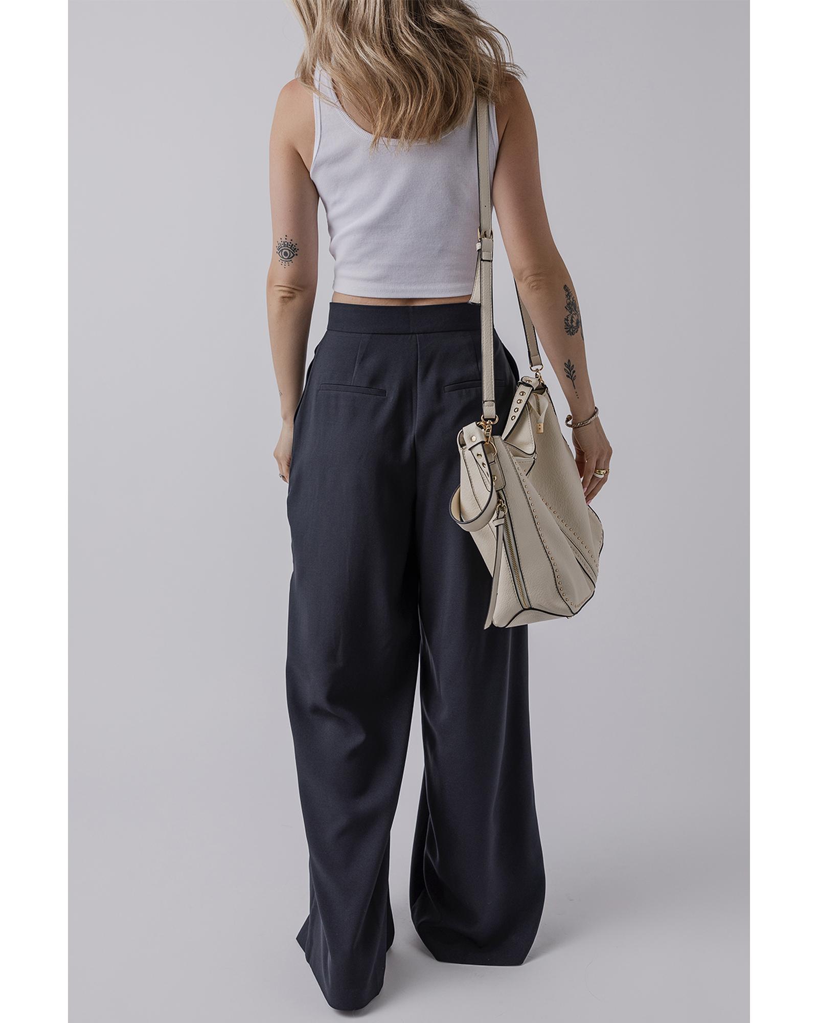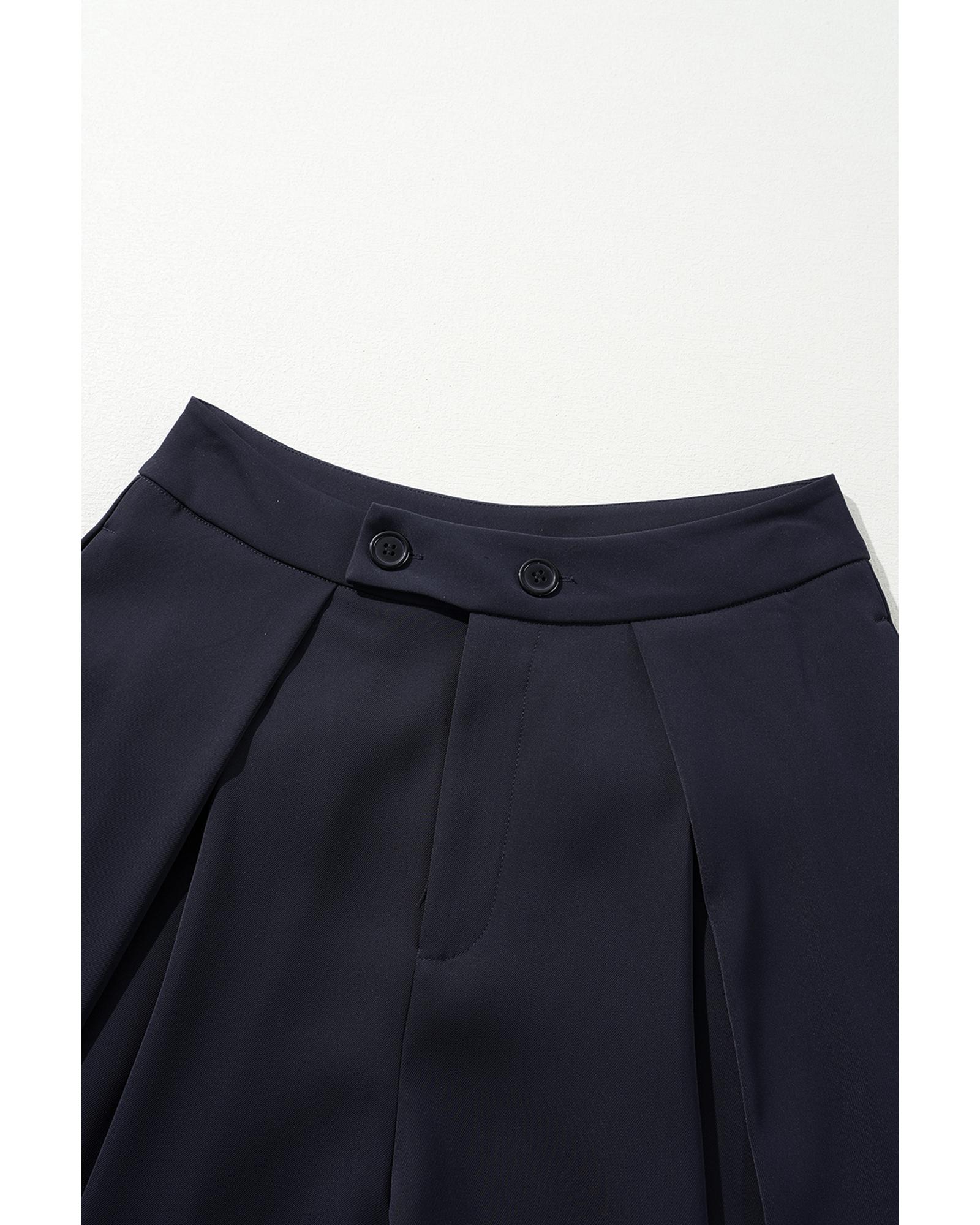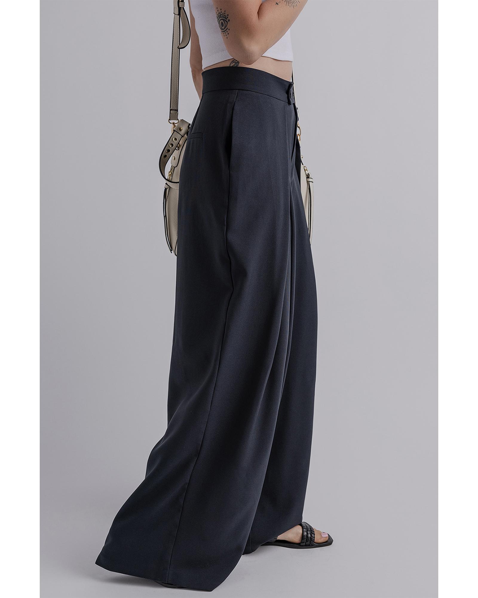Dirty blue Dual Buttoned High Waist Pleated Wide Leg Pants – S