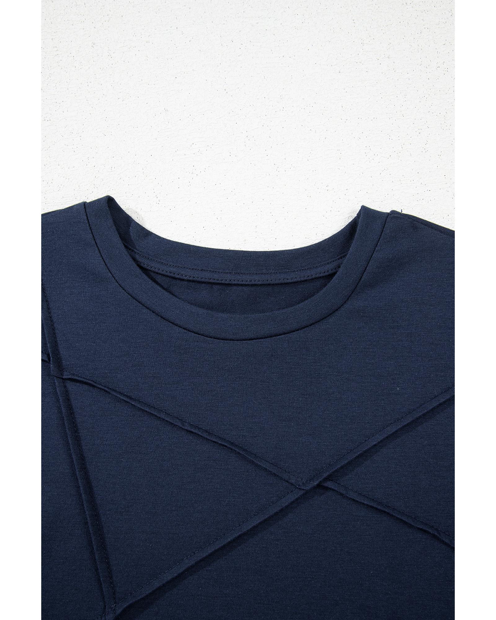 Dirty blue Solid Color Toothpick Stripe Round Neck T Shirt – L