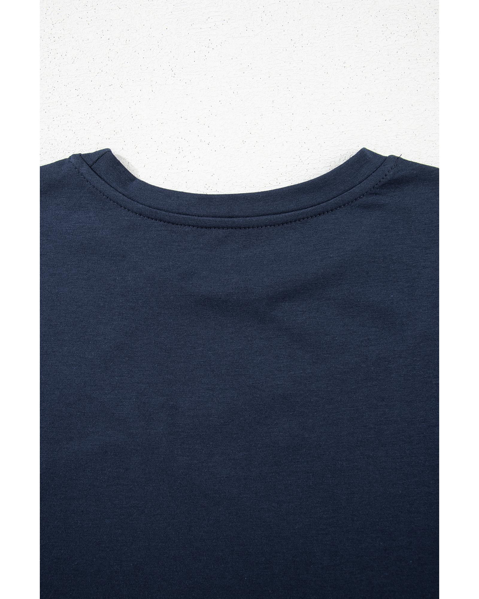 Dirty blue Solid Color Toothpick Stripe Round Neck T Shirt – M