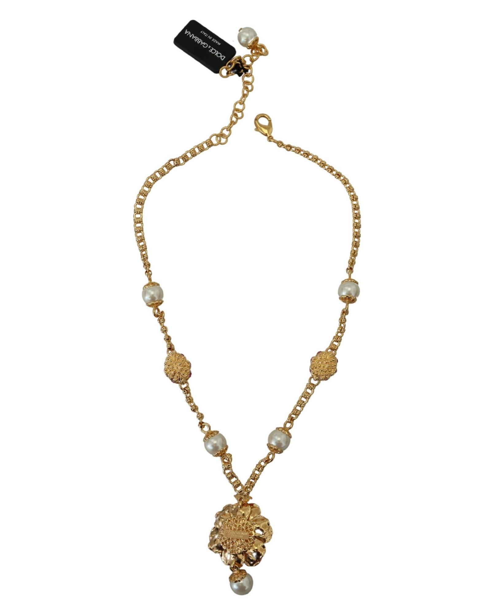 Dolce & Gabbana Gold Crystal Statement Charm Necklace One Size Women