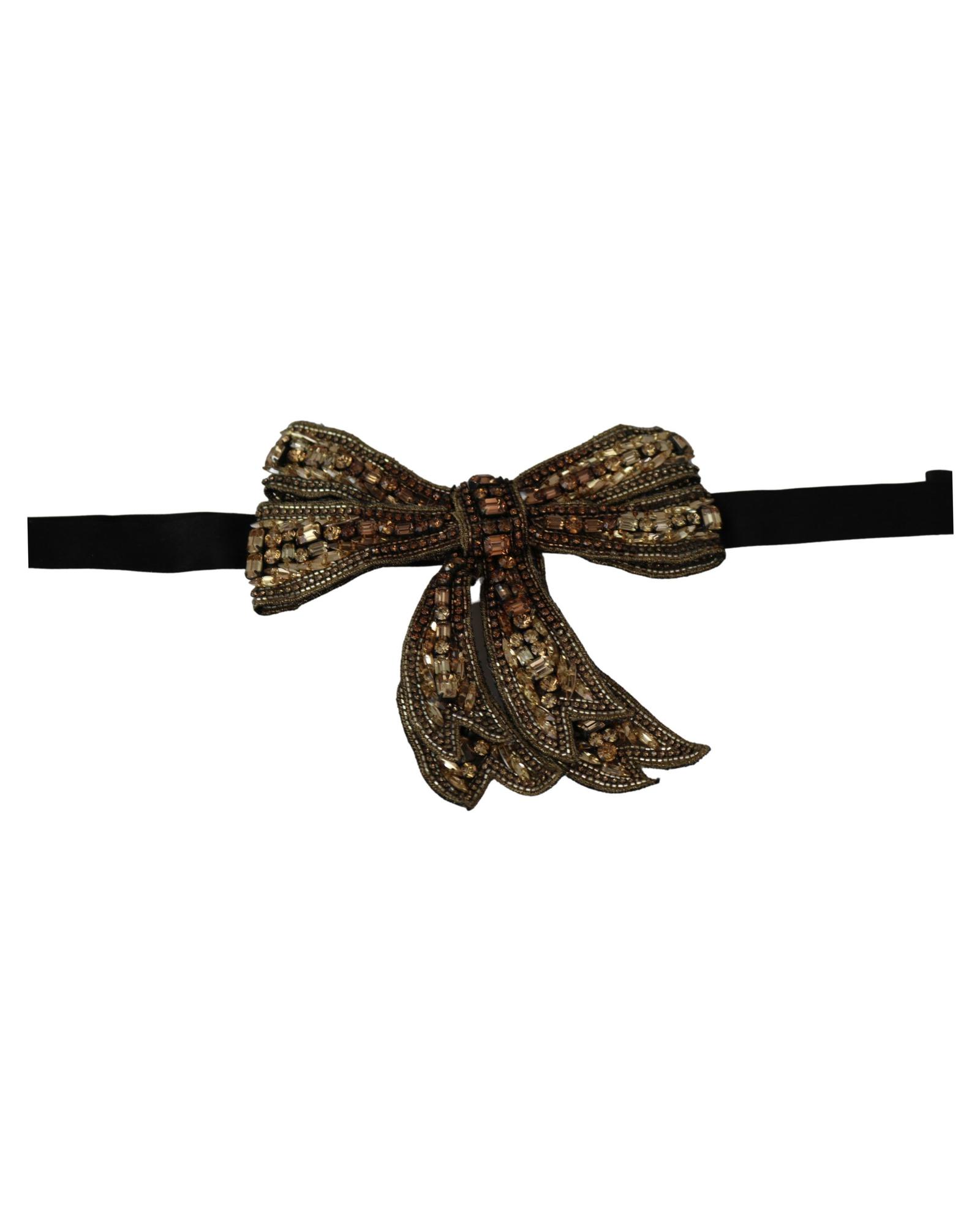 Dolce & Gabbana Gold-Tone Silk Rhinestone Bow Tie One Size Women