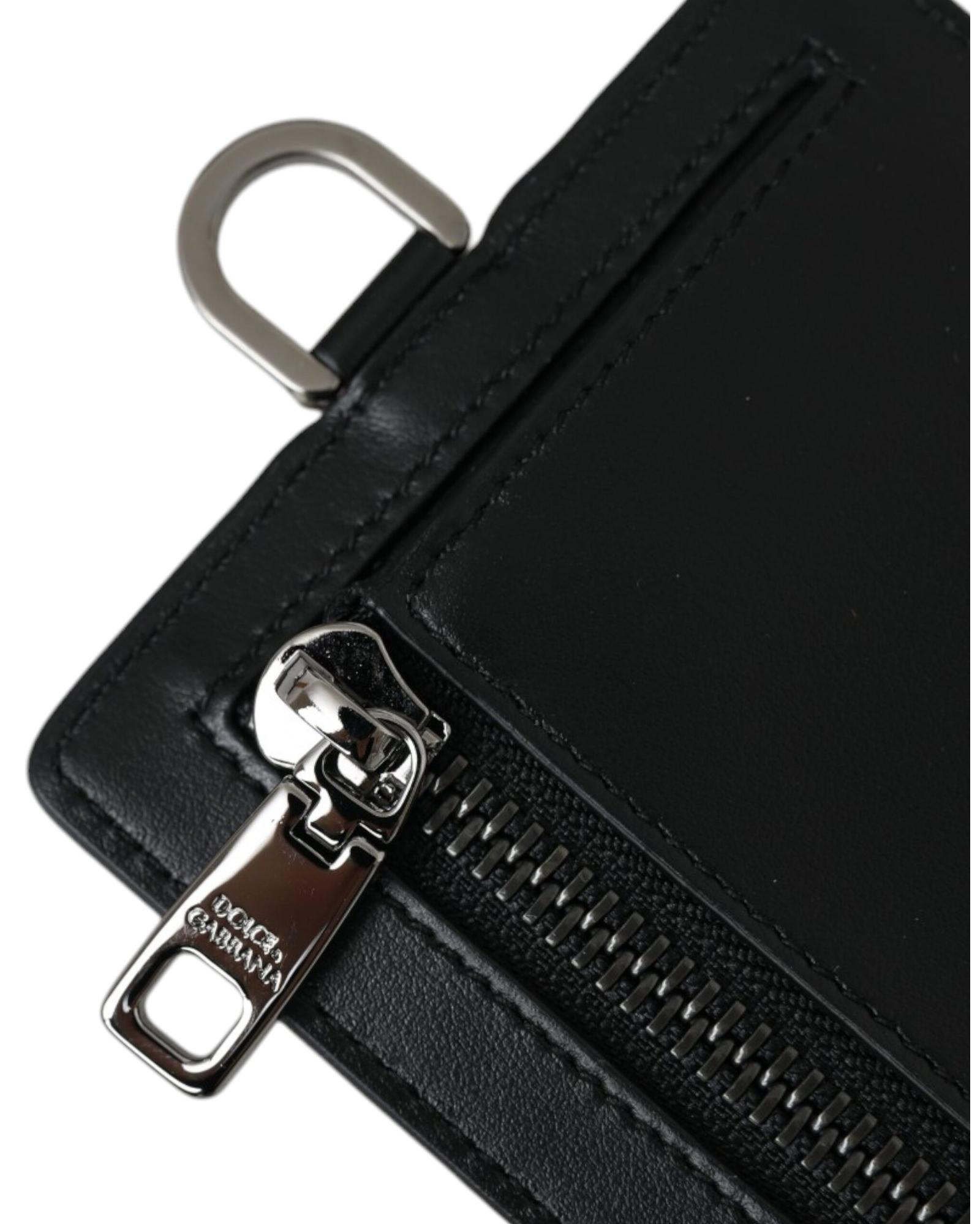 Dolce & Gabbana Men’s Black Calf Leather Lanyard Logo Card Holder Wallet – One Size