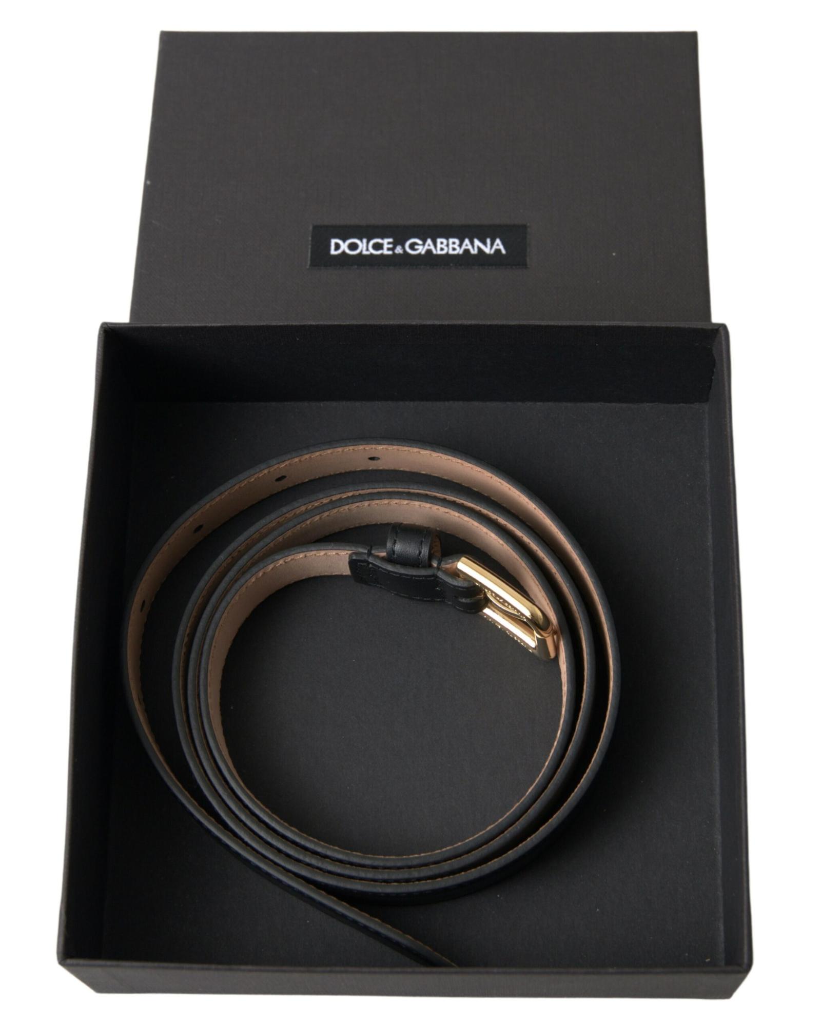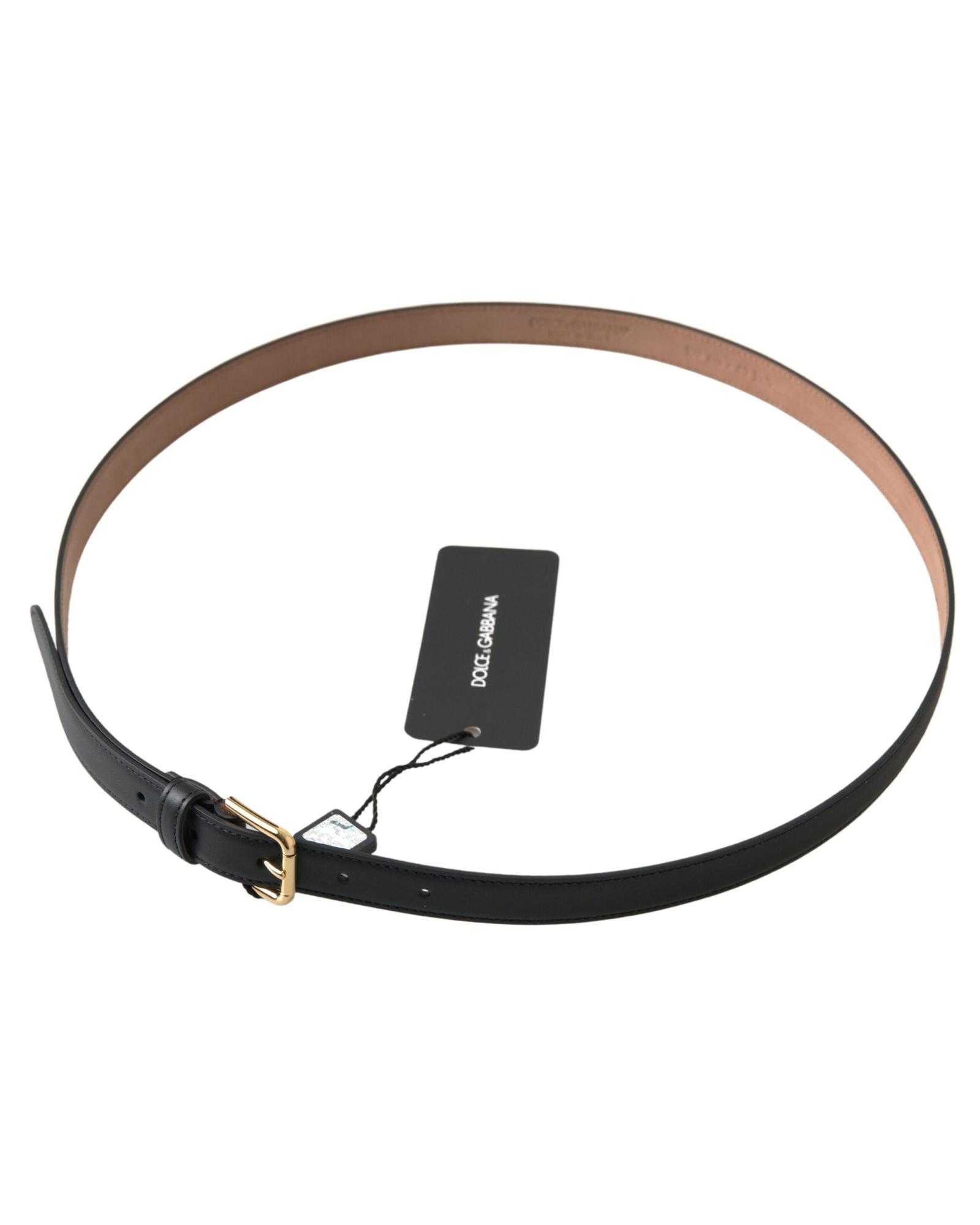 - 100% Authentic Dolce & Gabbana Black Leather Gold Tone Metal Buckle Belt