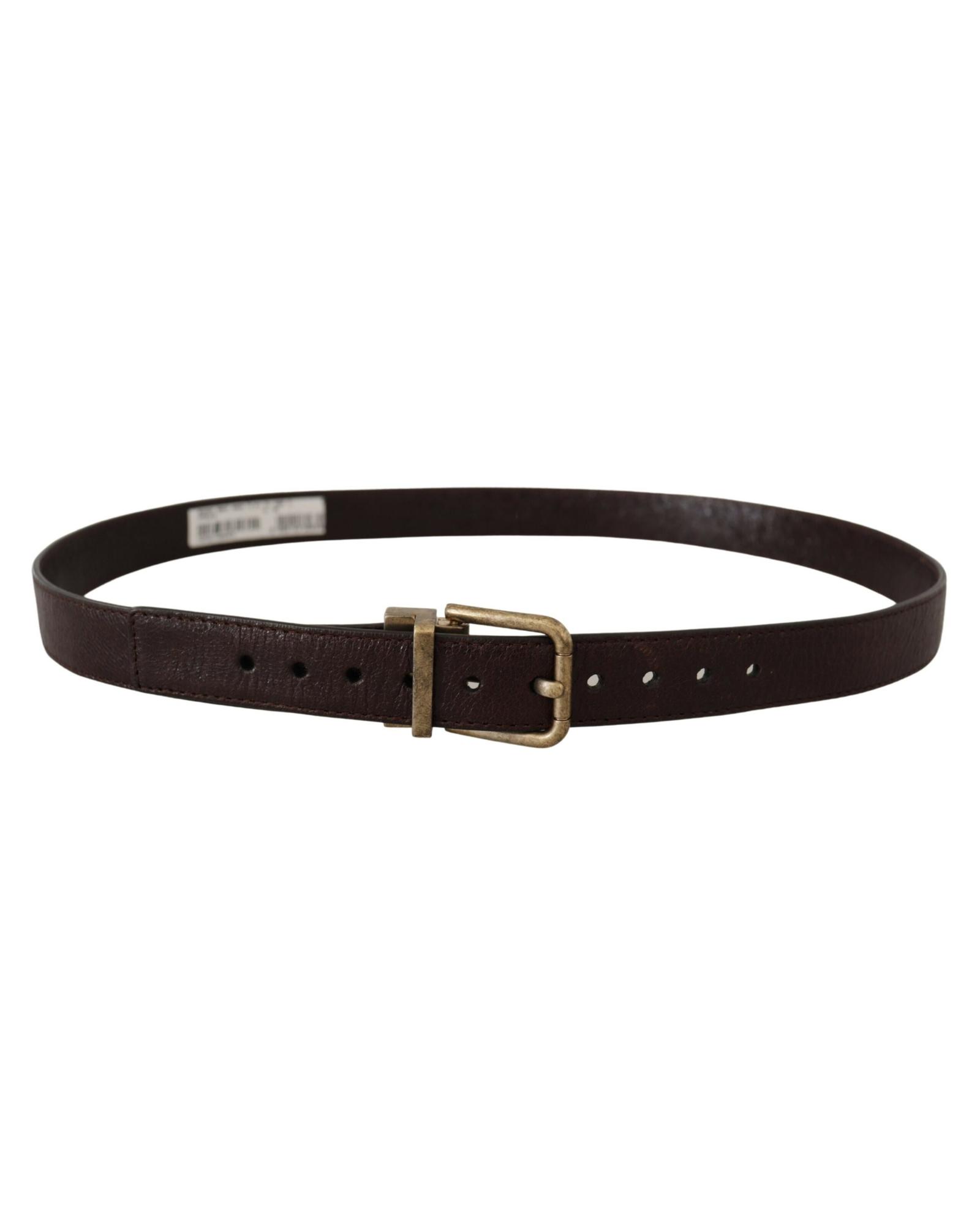 Dolce & Gabbana Men’s Brown Calf Leather Vintage Logo Metal Buckle Belt – 95 cm