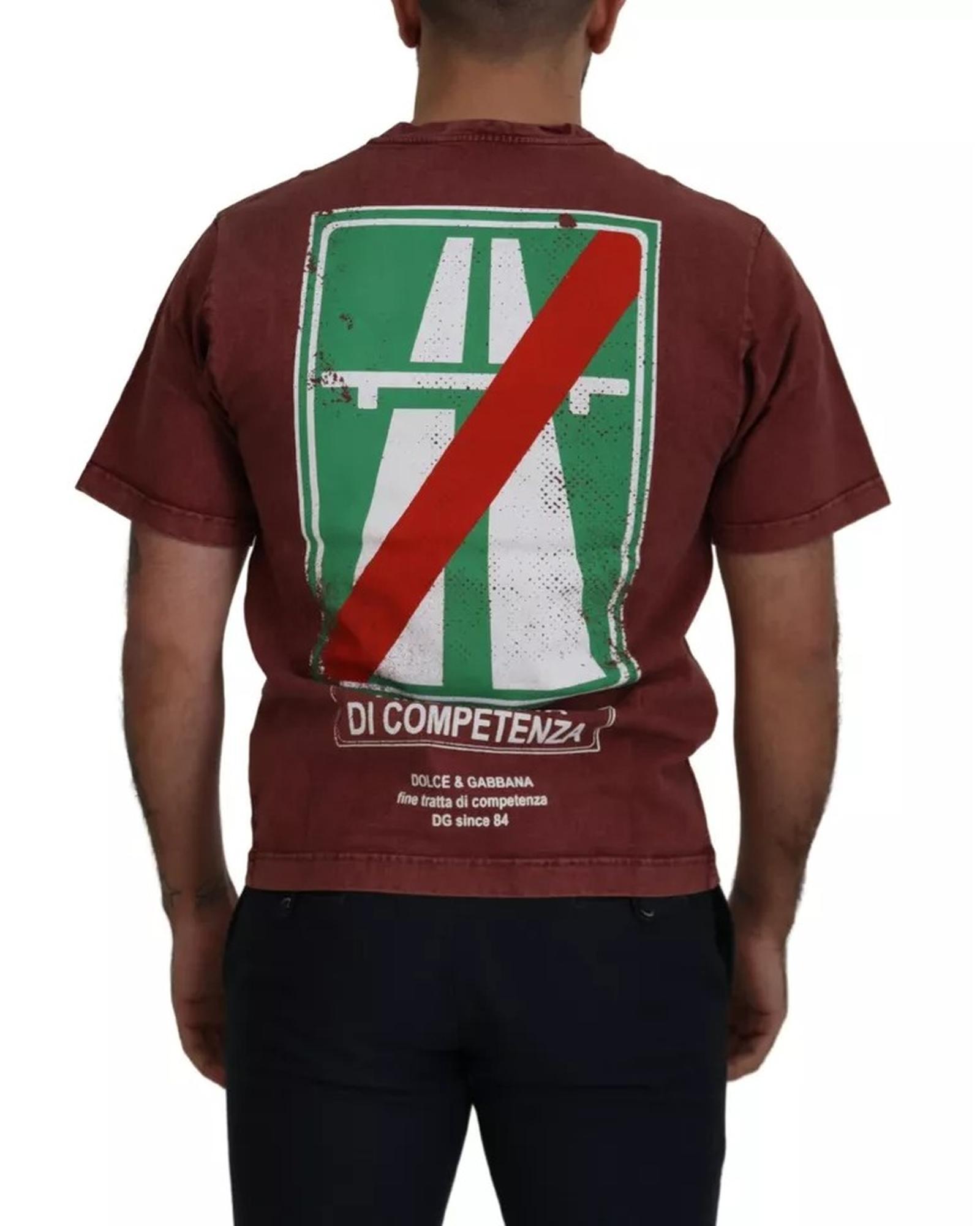 Dolce & Gabbana Men’s Maroon Printed Crewneck Tee Cotton T-shirt – 44 IT