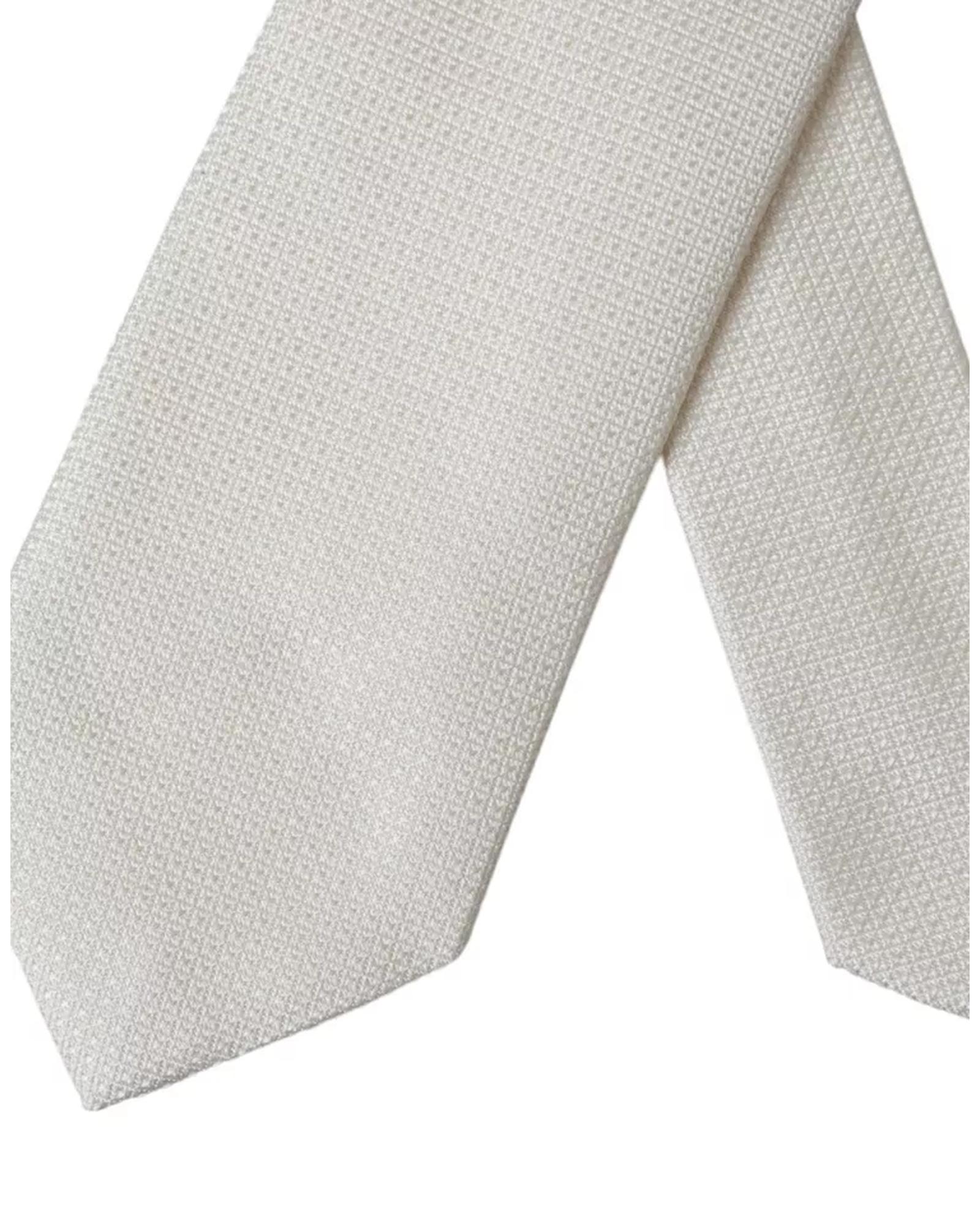 Dolce & Gabbana Men’s Off White Patterned Silk Classic Adjustable Tie – One Size
