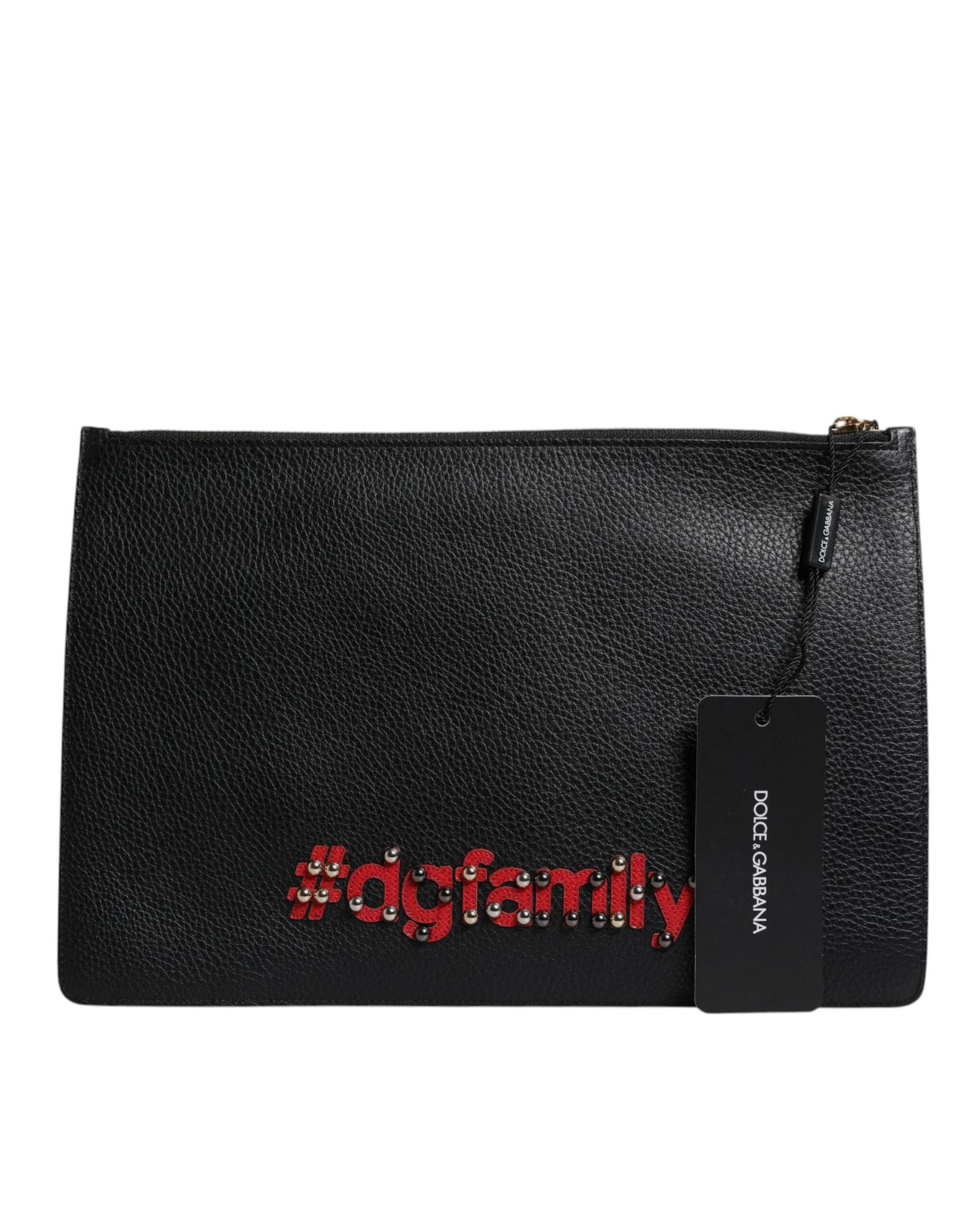 Dolce & Gabbana Women’s Black #DGFamily Embellished Leather Clutch Bag – One Size