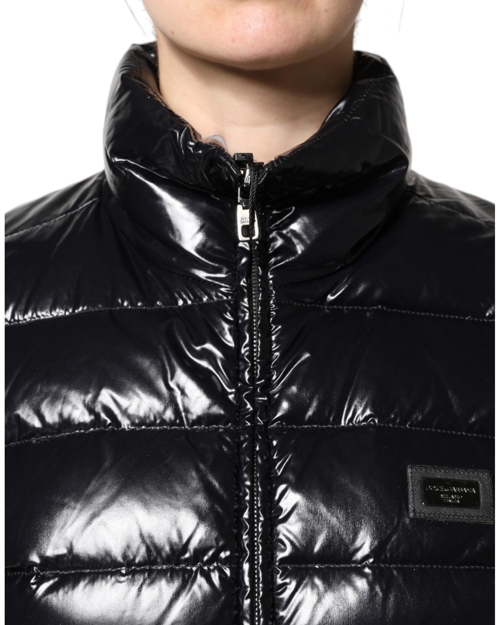 Dolce & Gabbana Women’s Black Logo Plaque Full Zip Puffer Jacket – 42 IT
