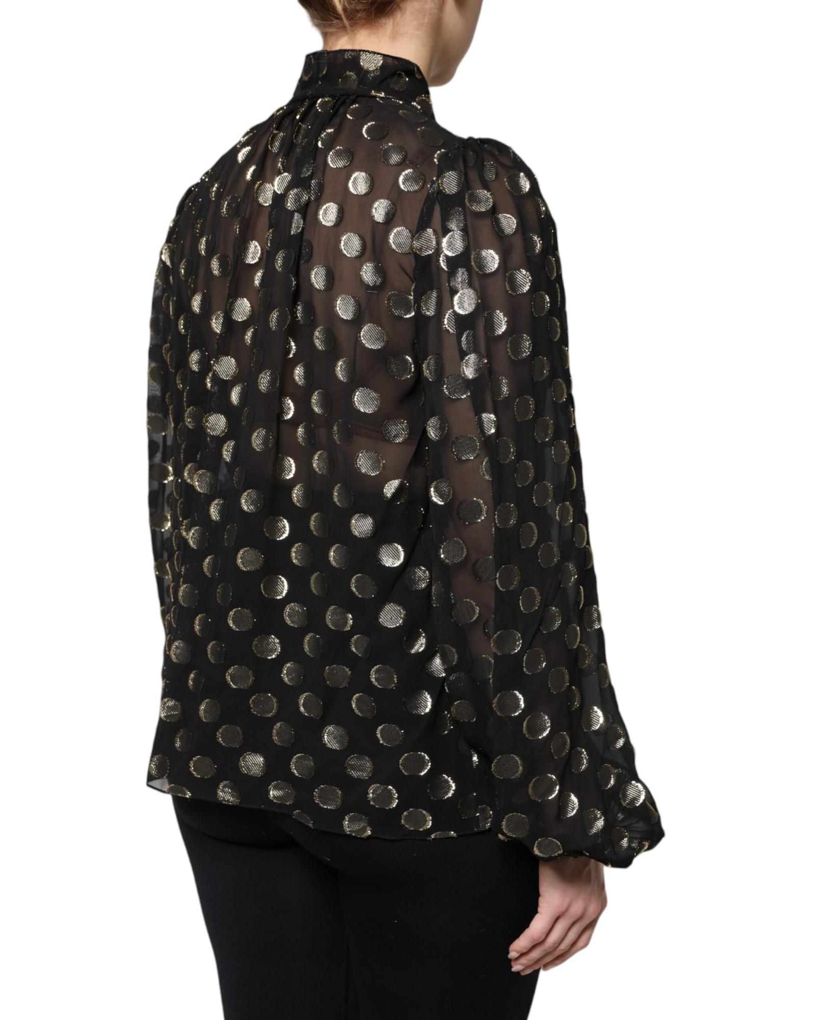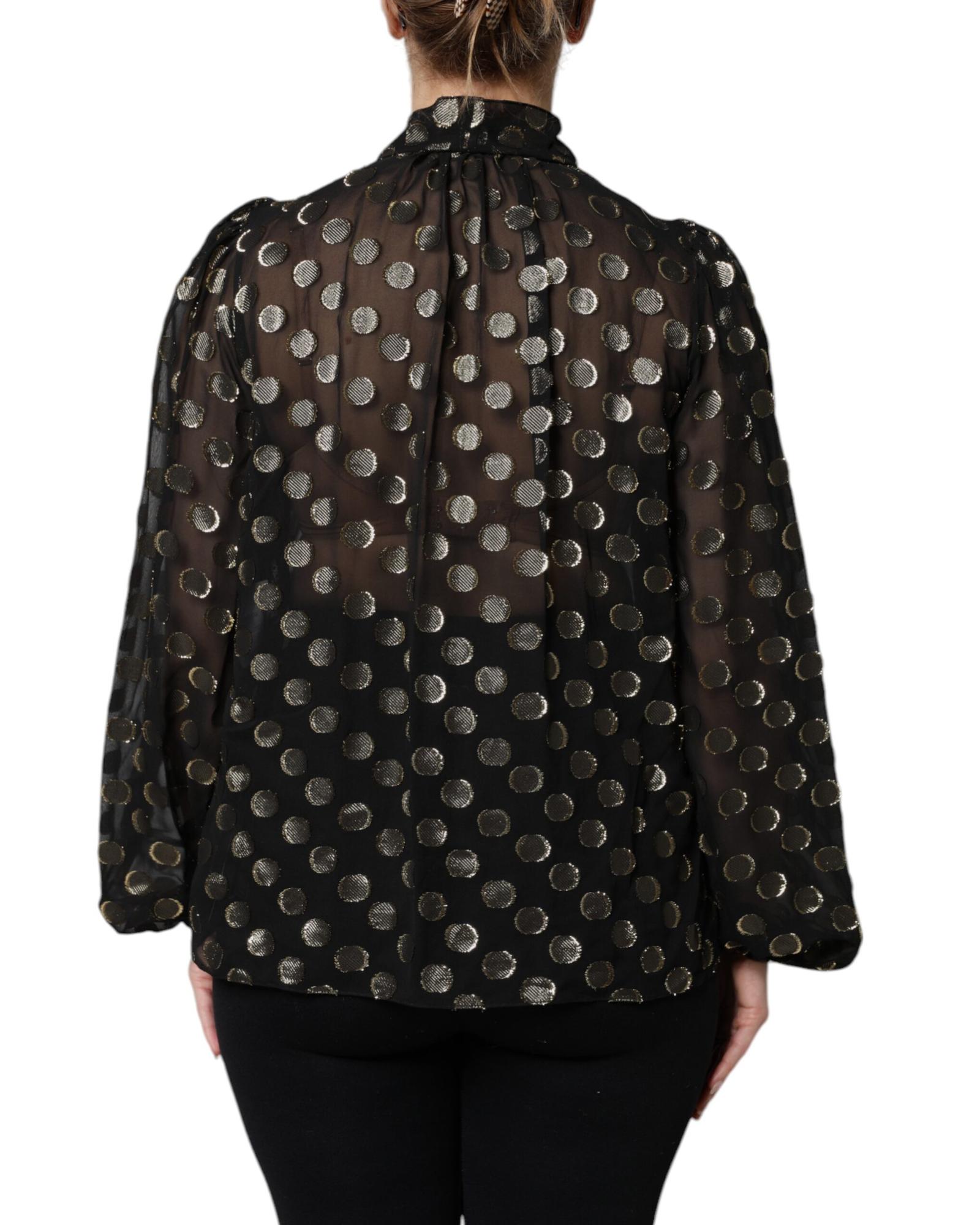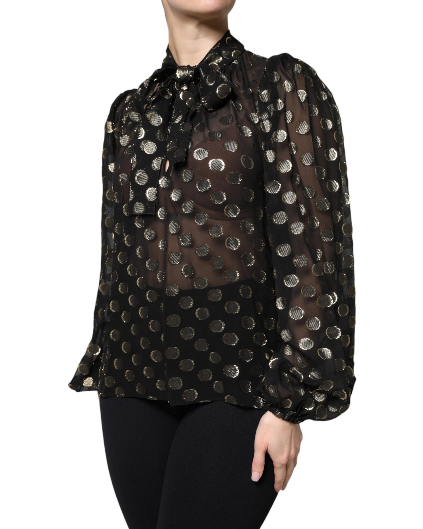 Dolce & Gabbana Women’s Black Sheer Tied Neck Polka Dots Blouse Top – 36 IT