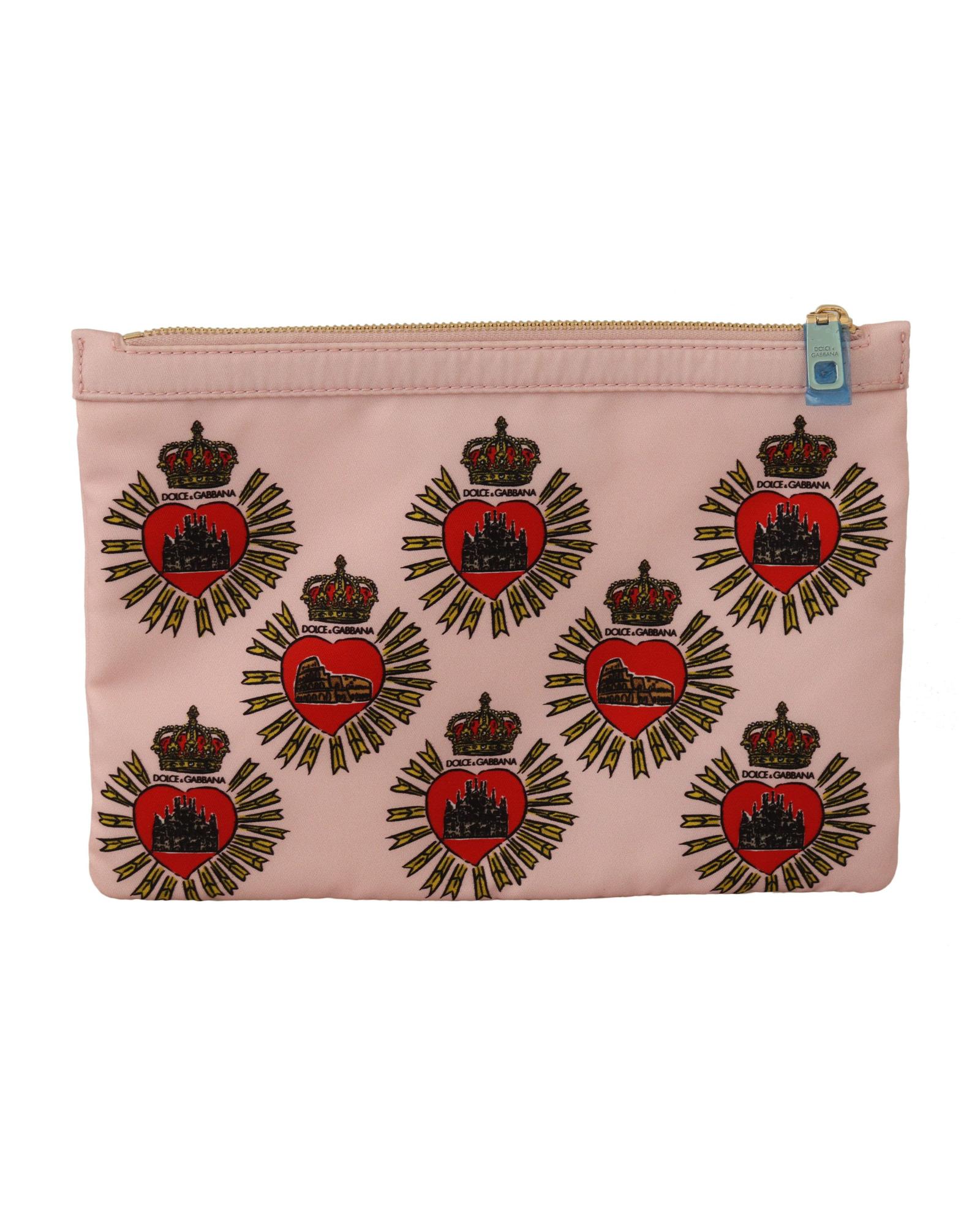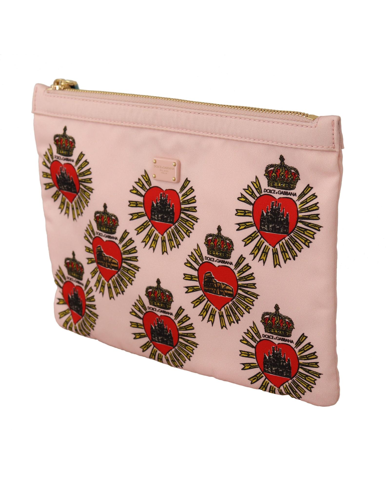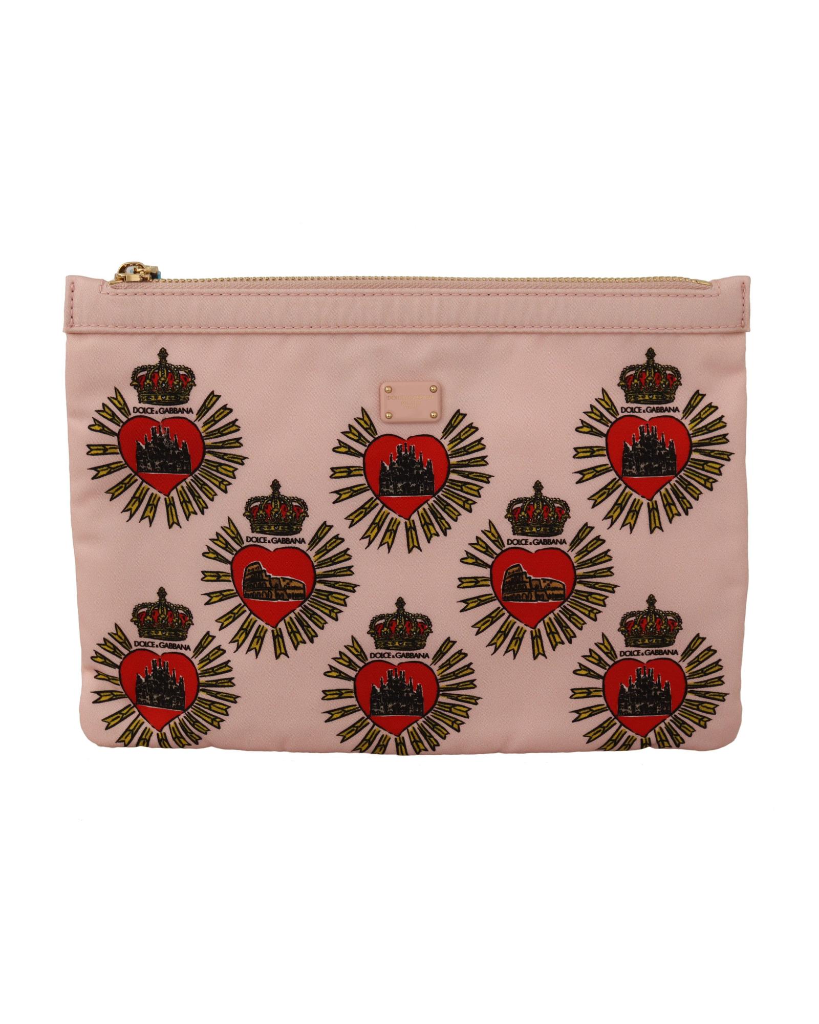 Dolce & Gabbana Women’s Clutch Pink D&G Logo Devotion Heart Nylon Pouch Wallet – One Size