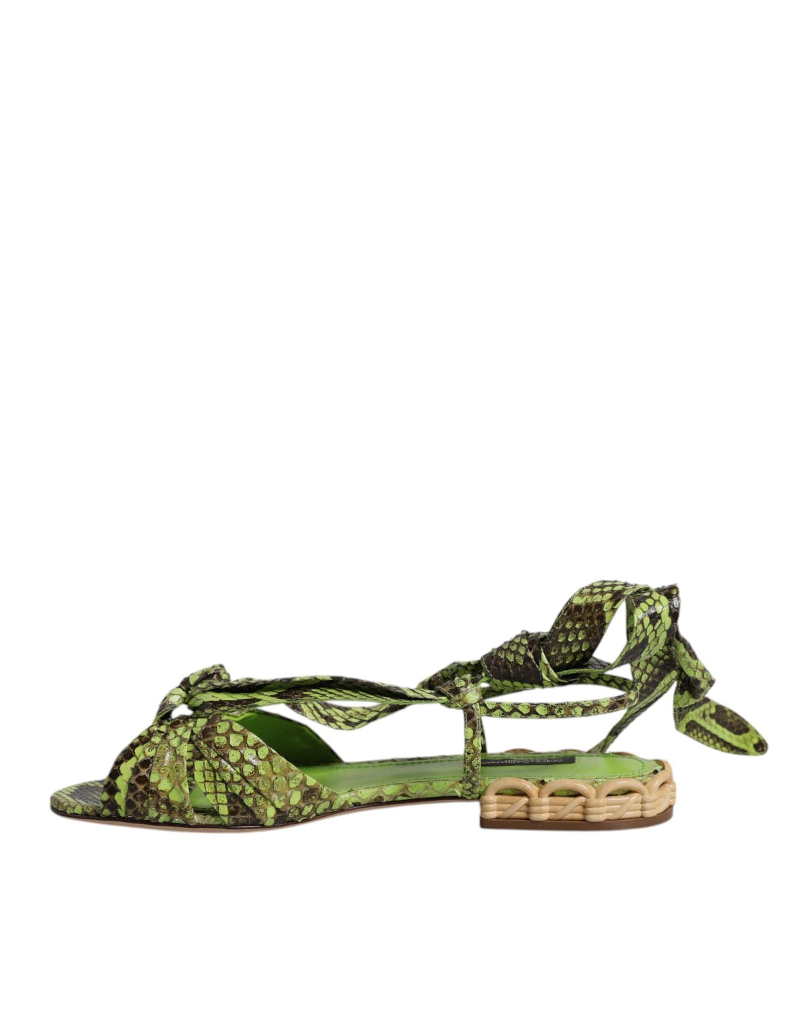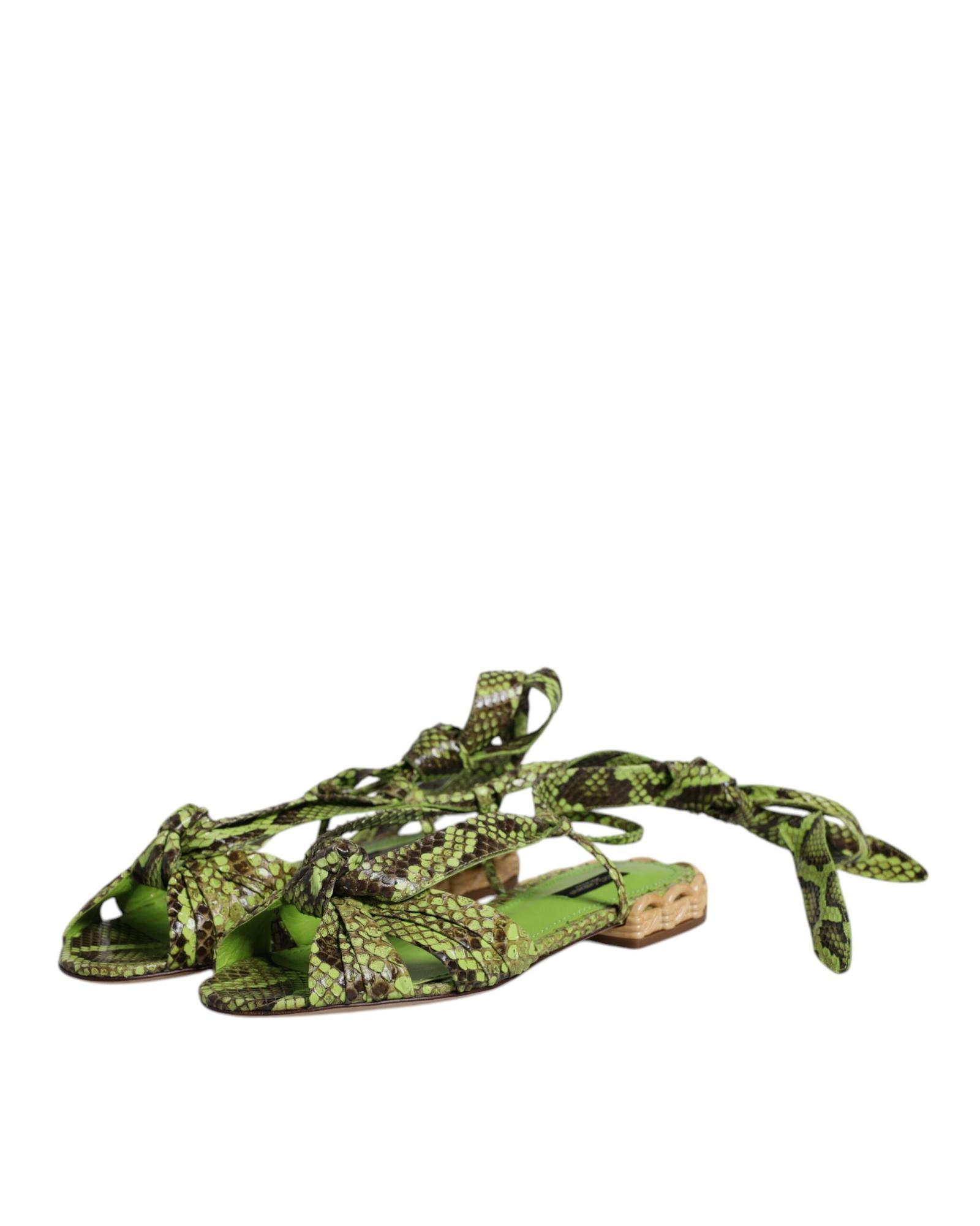 Dolce & Gabbana Women's Green Animal Print Ankle Wrap Sandals Shoes - 40 EU