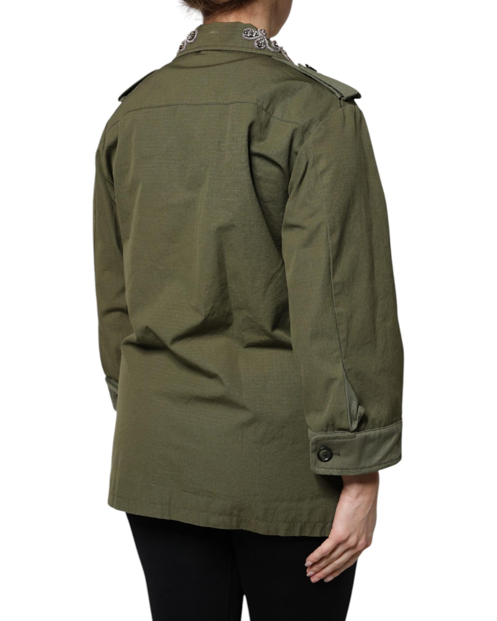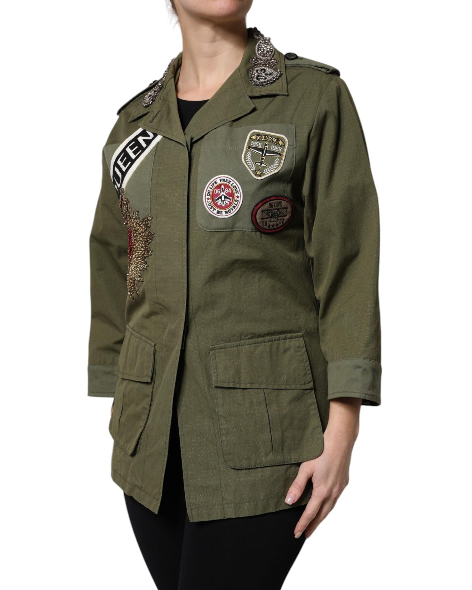 Dolce & Gabbana Women’s Military Green Queen Embellished Coat Jacket – 40 IT