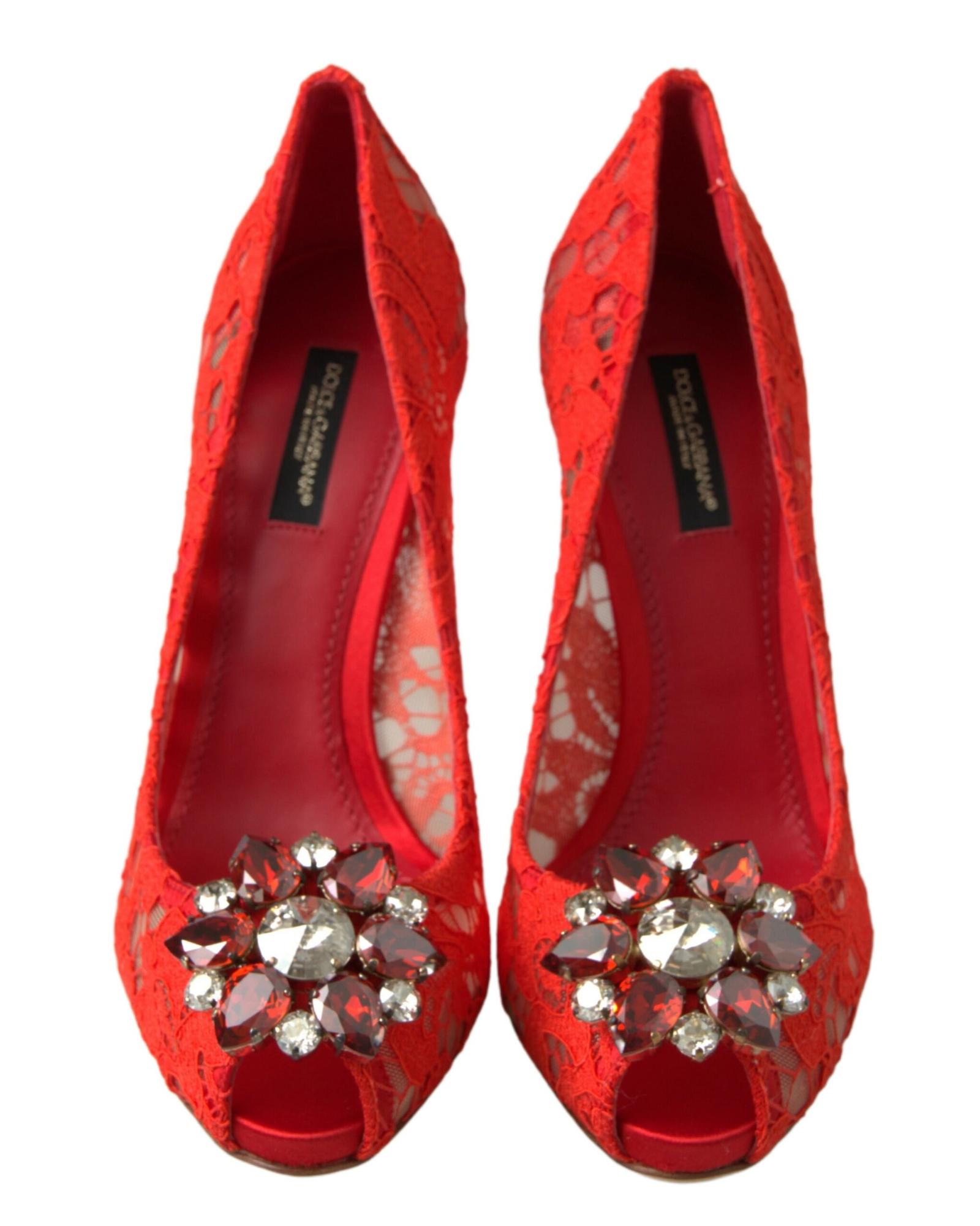 Dolce & Gabbana Women’s Red Taormina Lace Crystal Heels Pumps Shoes – 36 EU