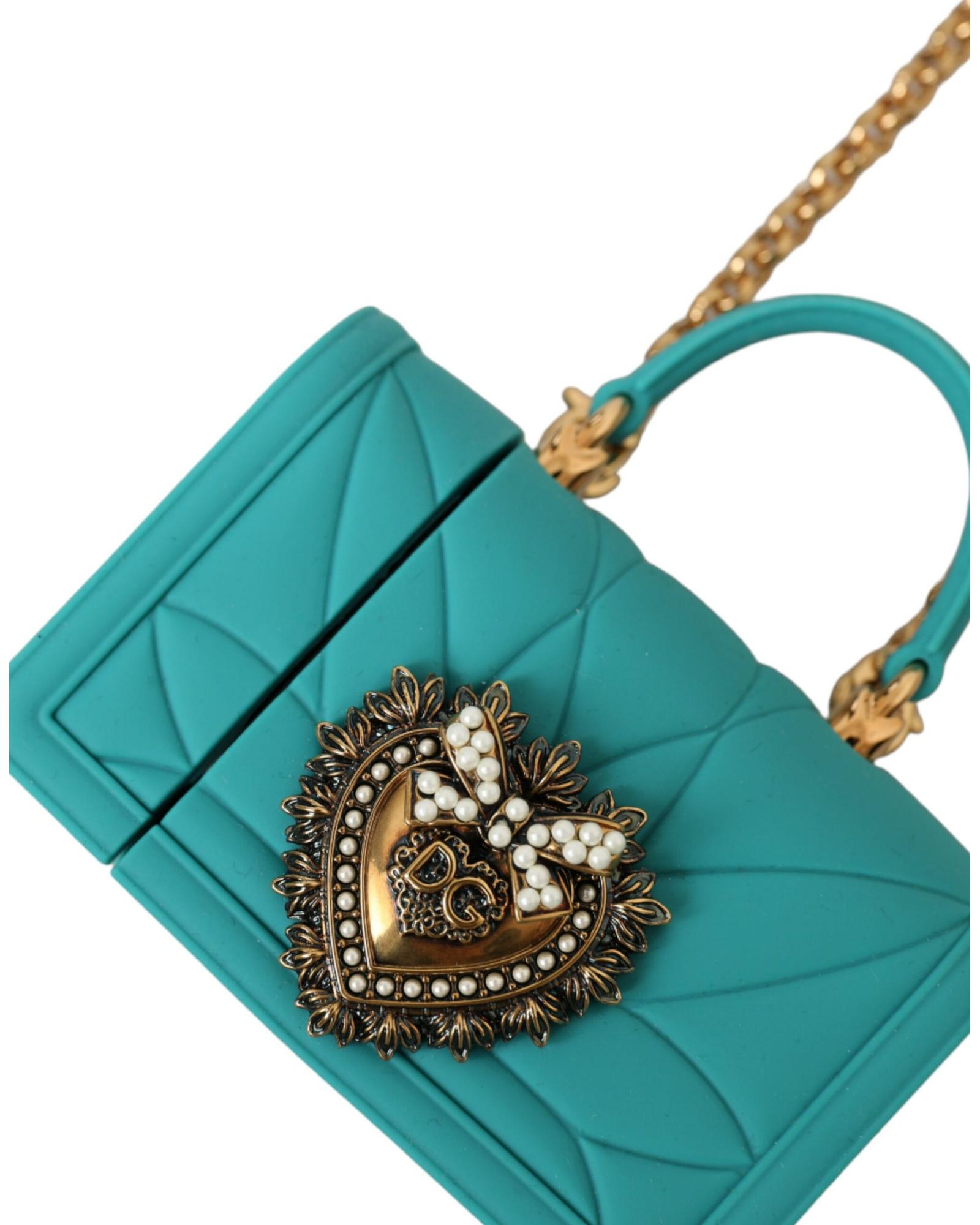Dolce & Gabbana Women’s Turquoise Silicone Devotion Heart Cover Bag Airpods Case – One Size