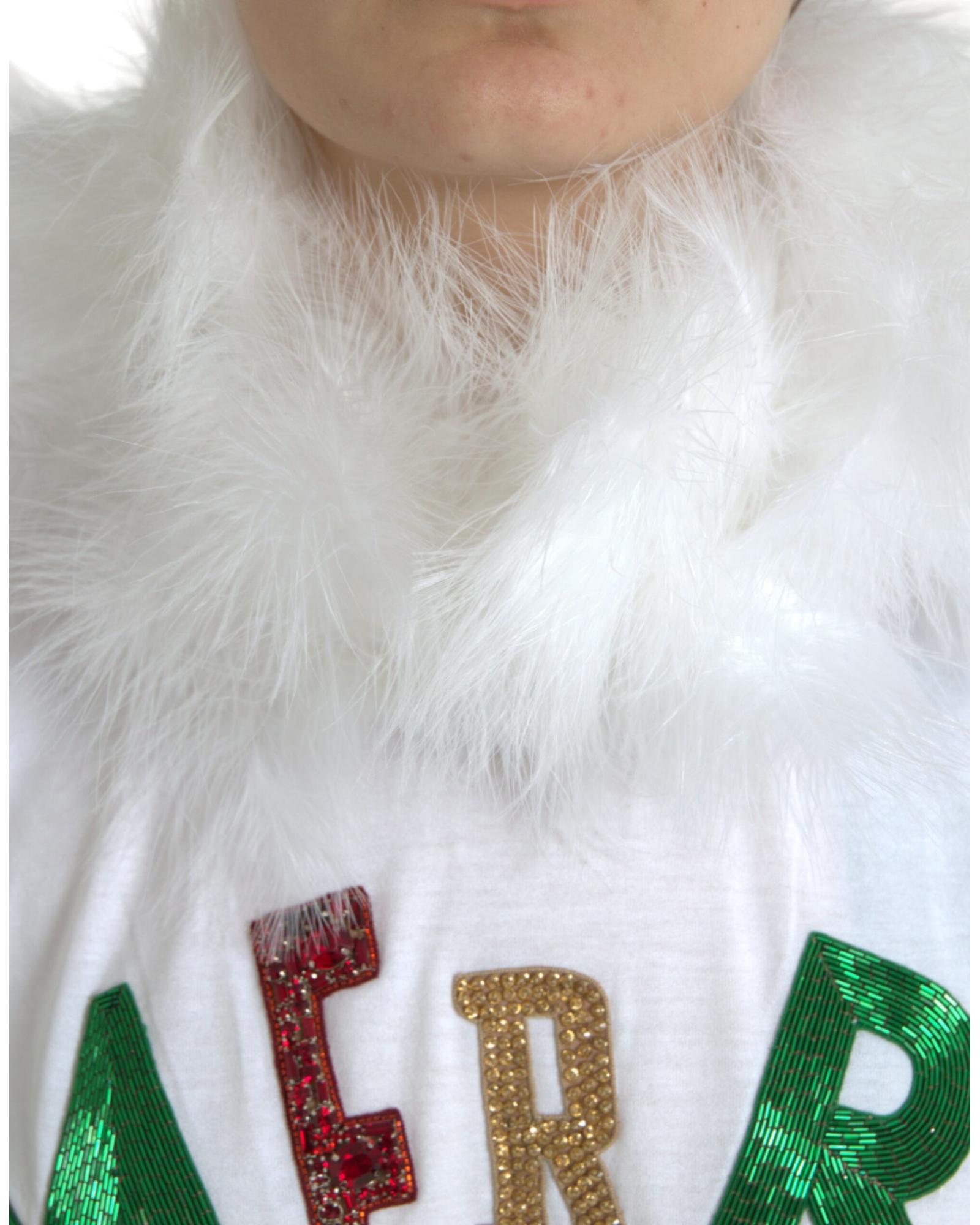 Dolce & Gabbana Women’s White Cotton Christmas Sequin Fur T-shirt – 36 IT