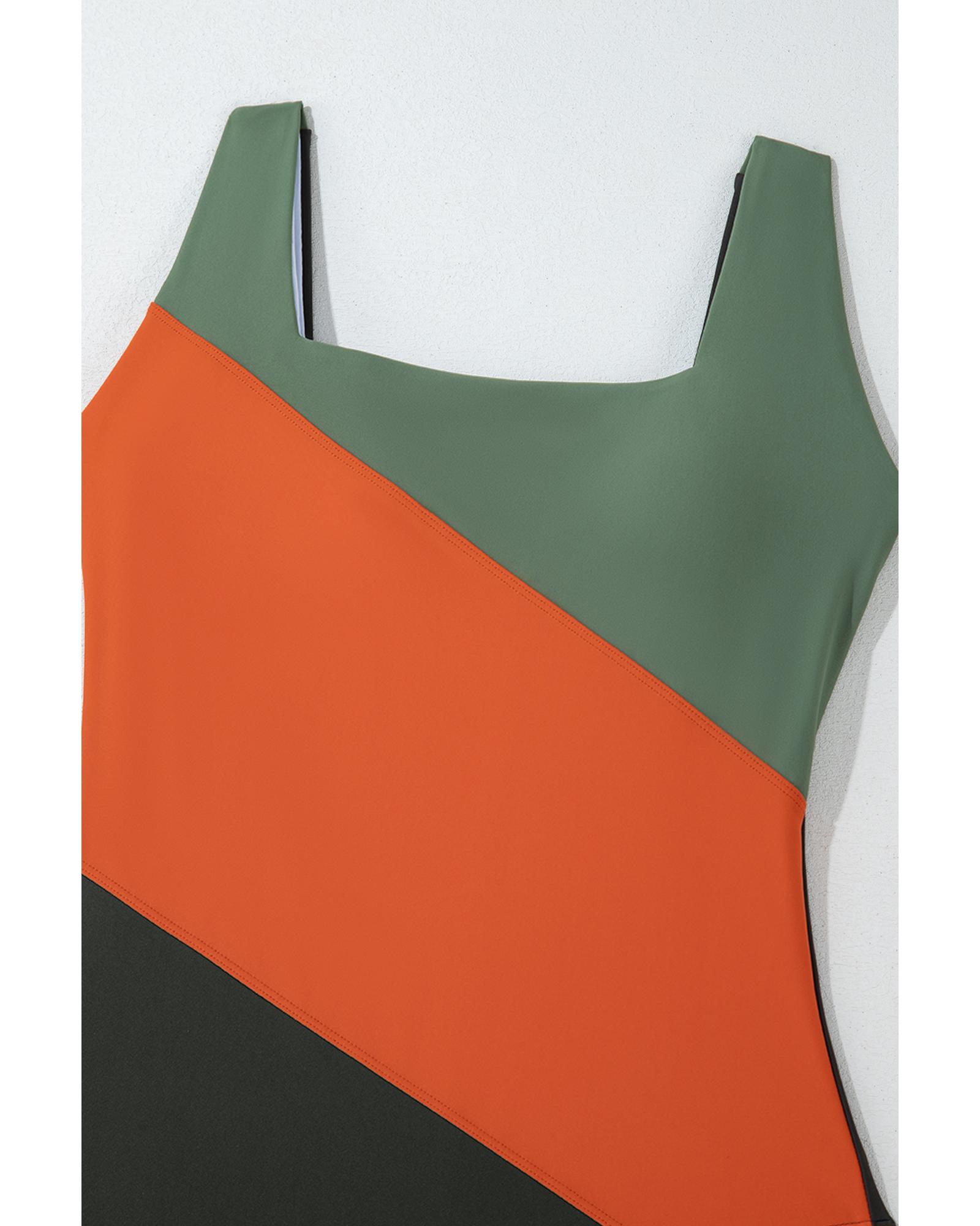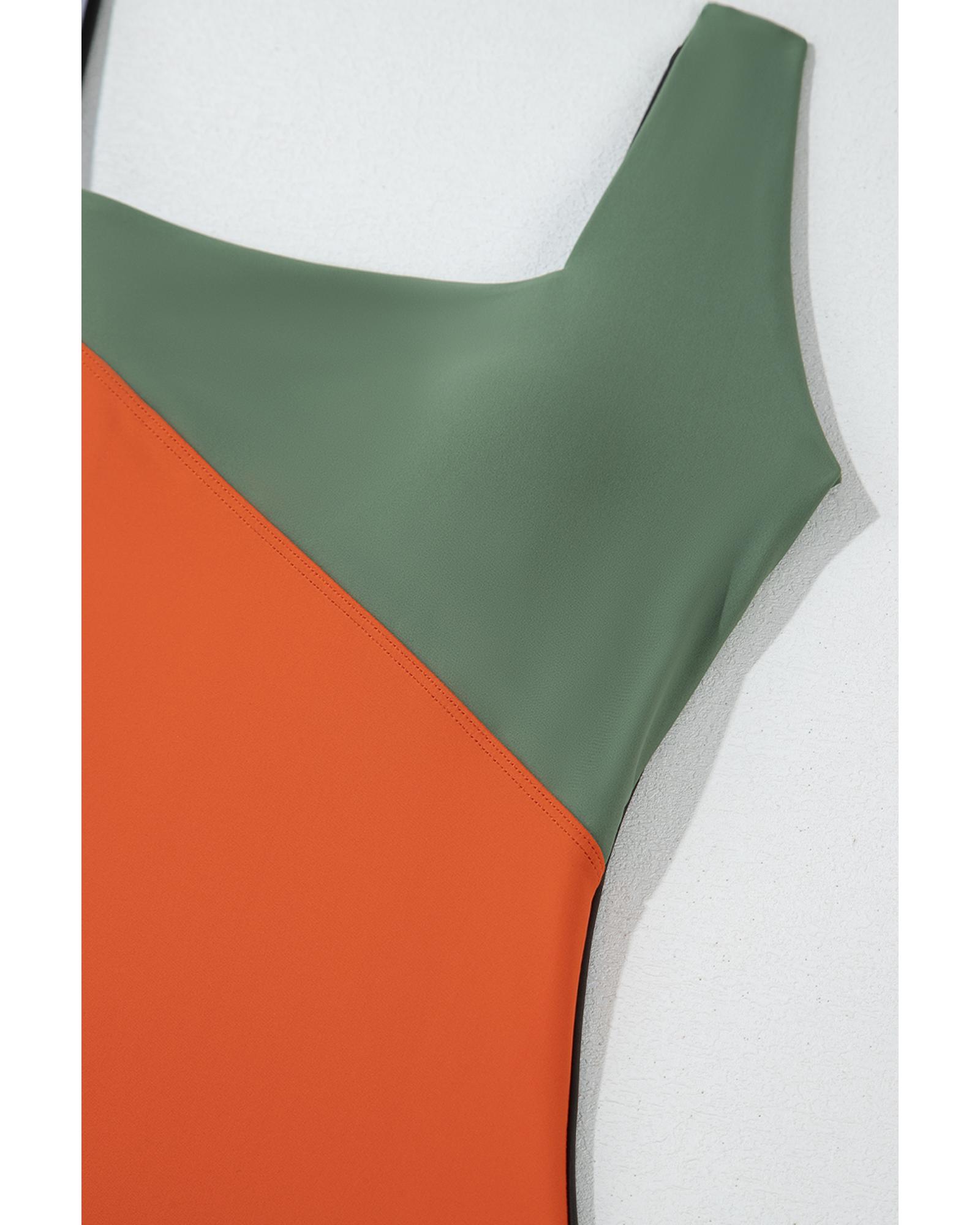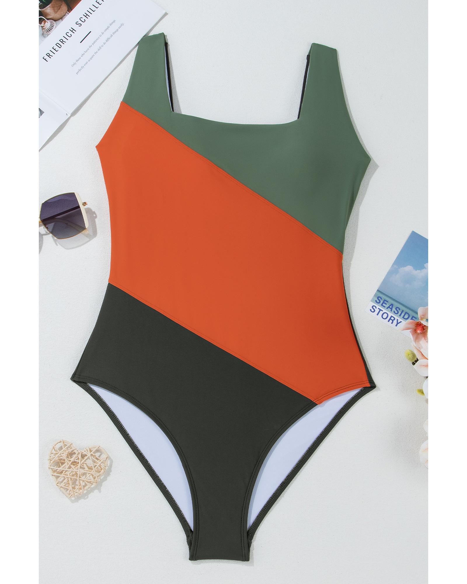 Duffel Green Color Block Padded Square Neck One Piece Swimsuit – L