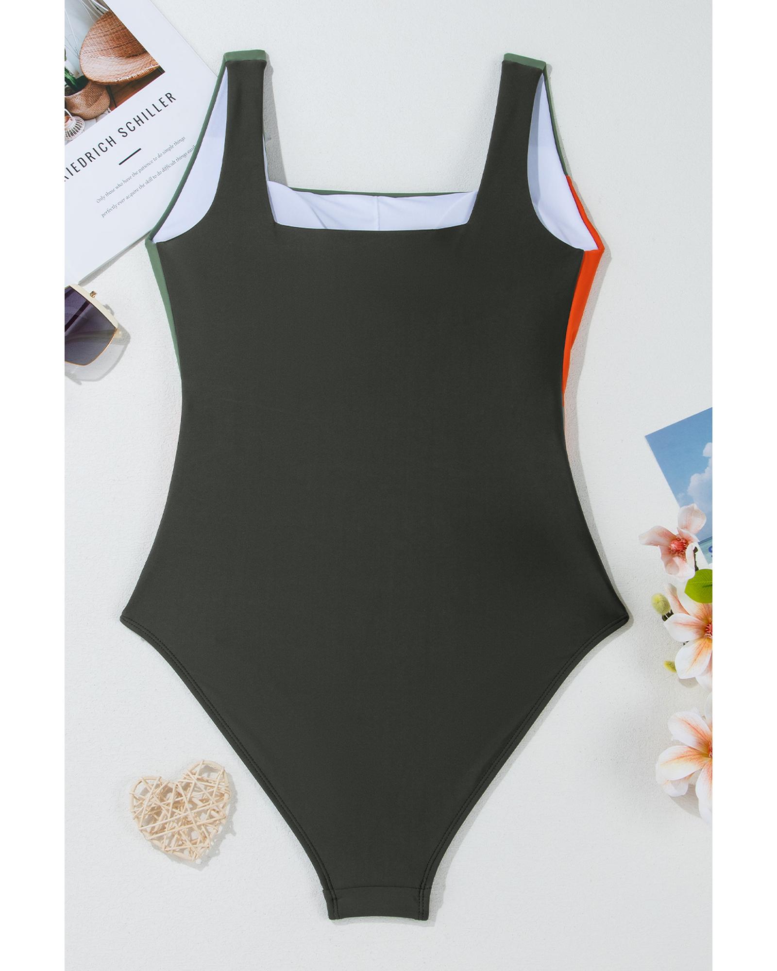Duffel Green Color Block Padded Square Neck One Piece Swimsuit – XL