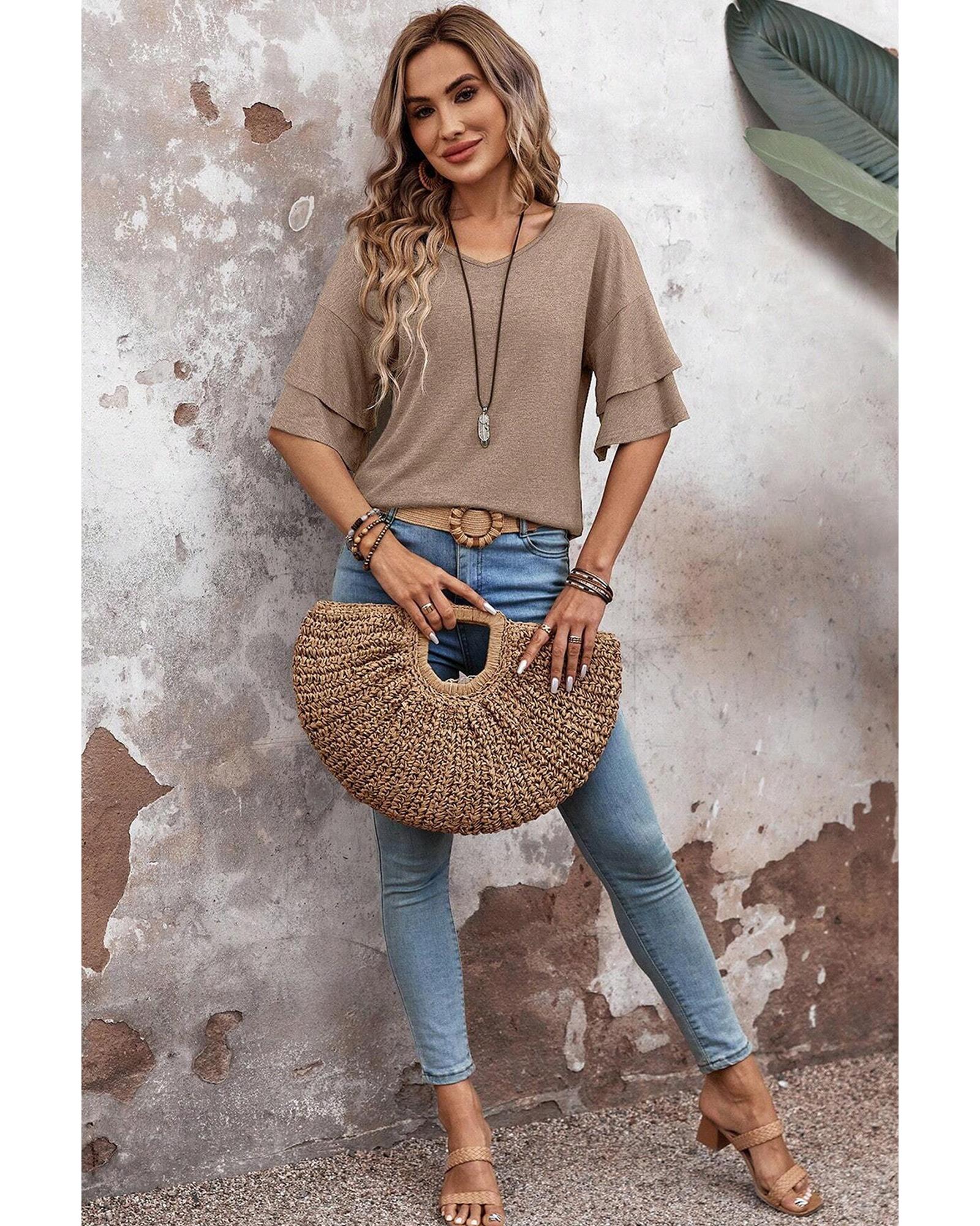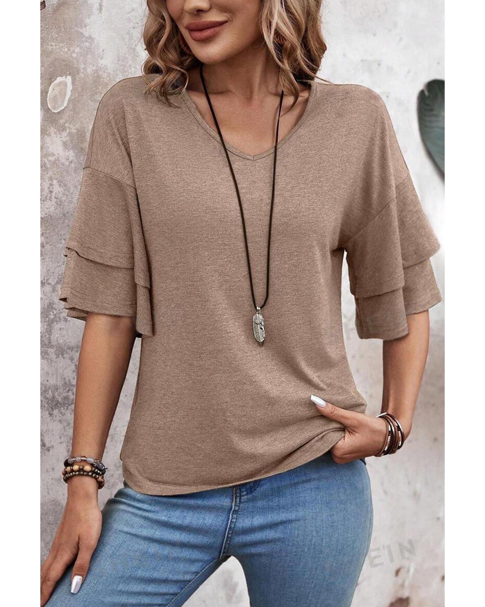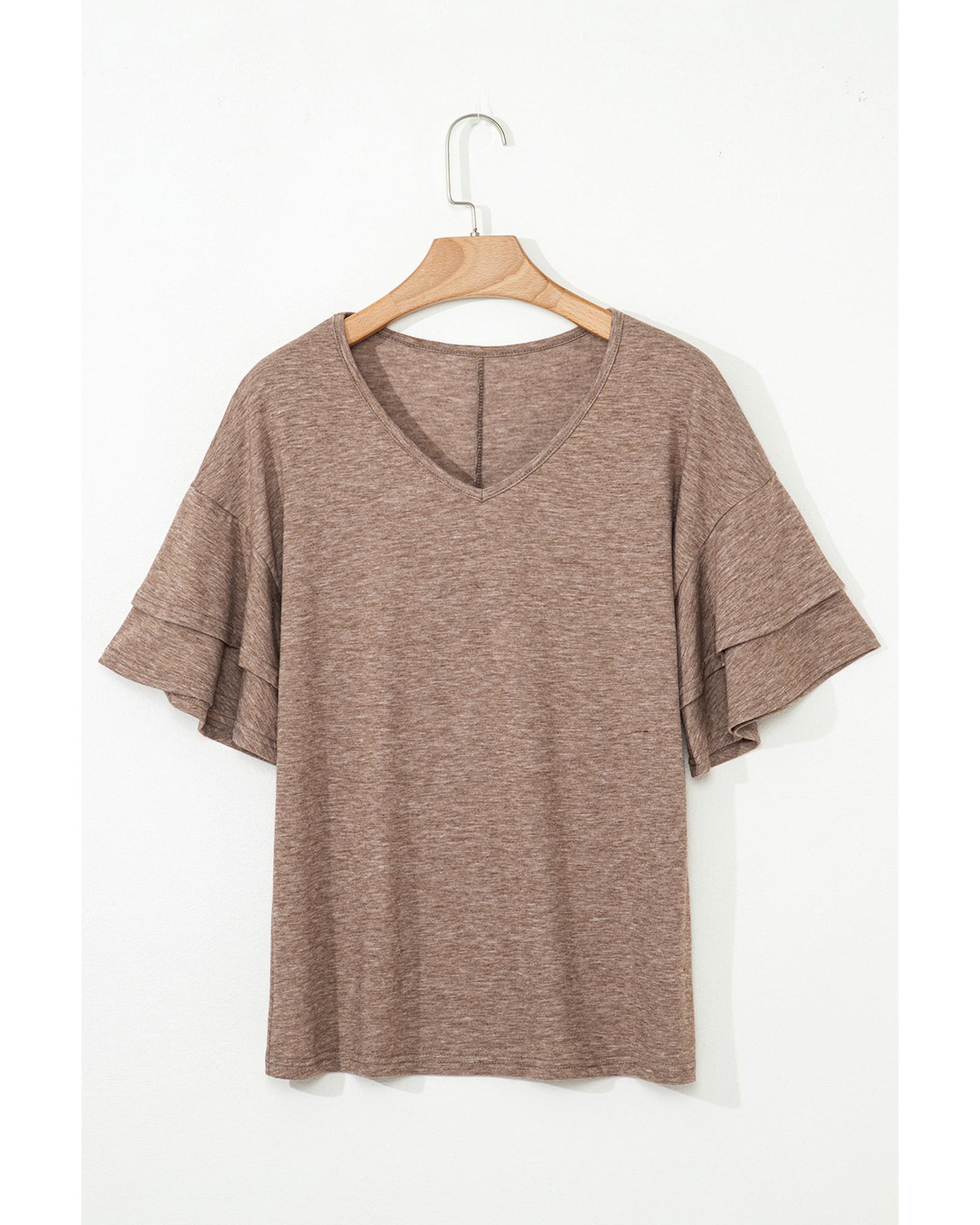 DUNE Solid Colour V-Neck Double Layer Sleeve Loose T-Shirt – L