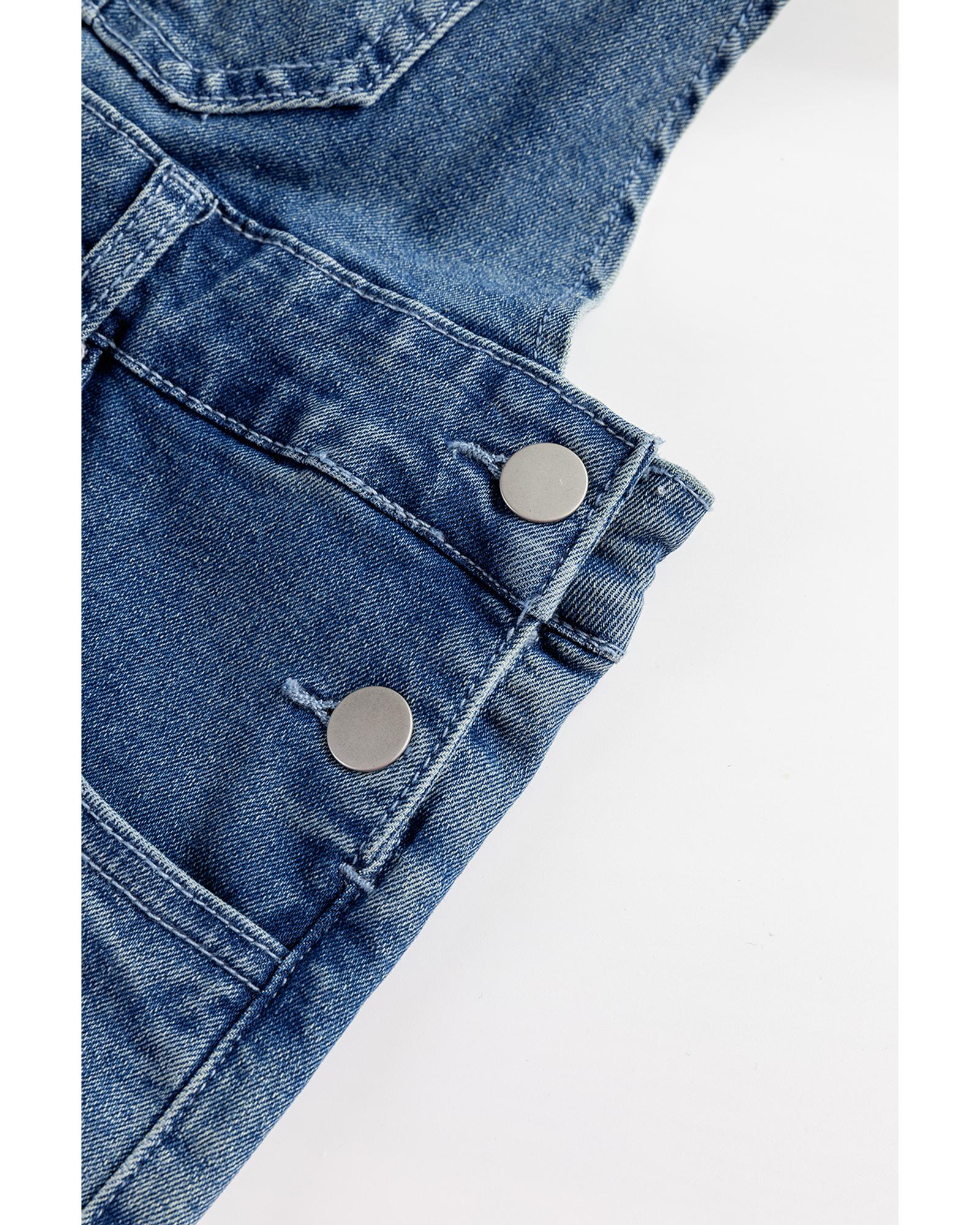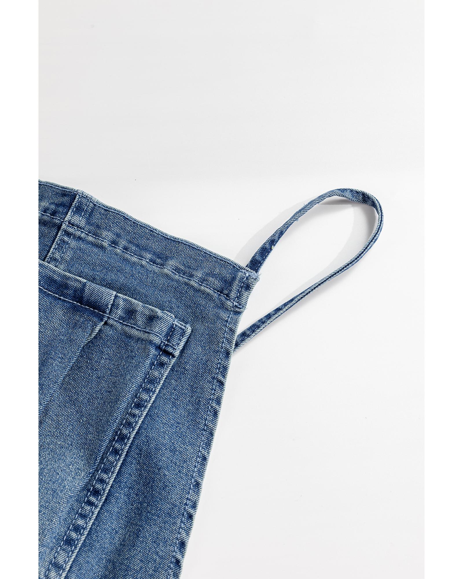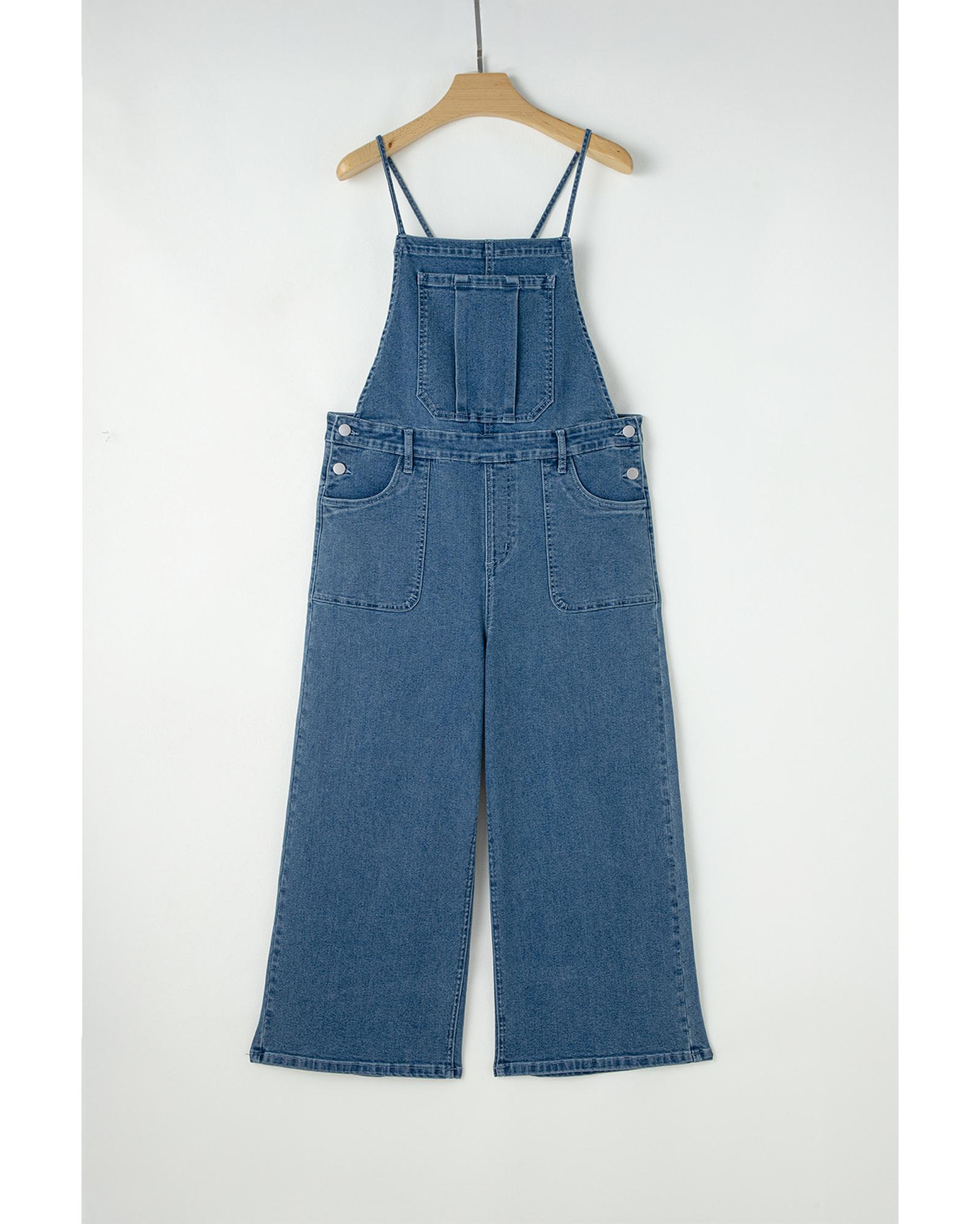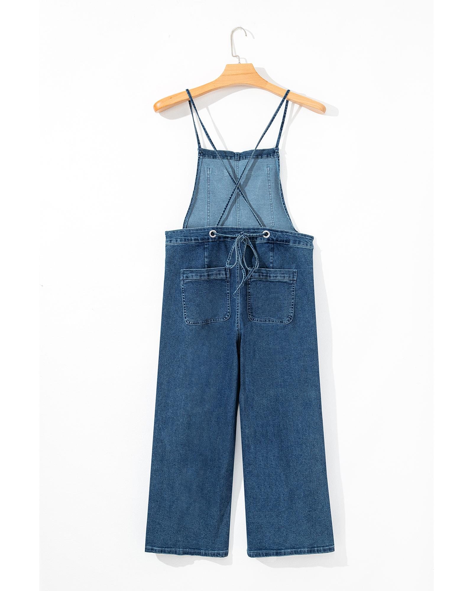 Dusk Blue Adjustable Tie Straps Cropped Wide Leg Denim Overalls – M