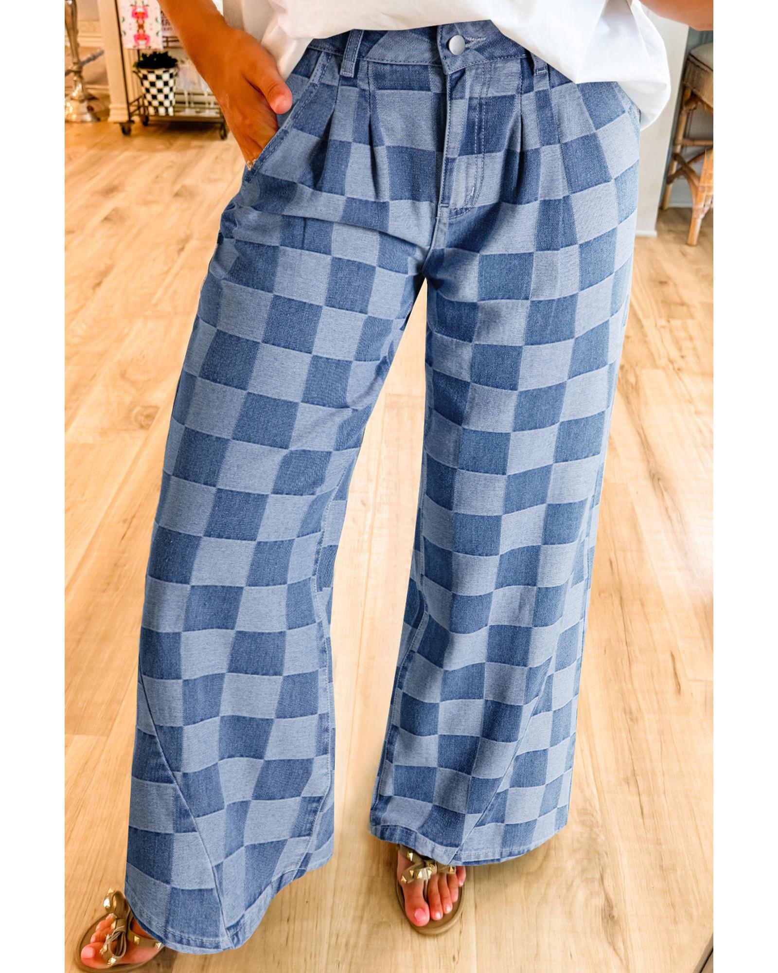 Dusk Blue Checkered Denim Wide Leg Jeans – 8 US