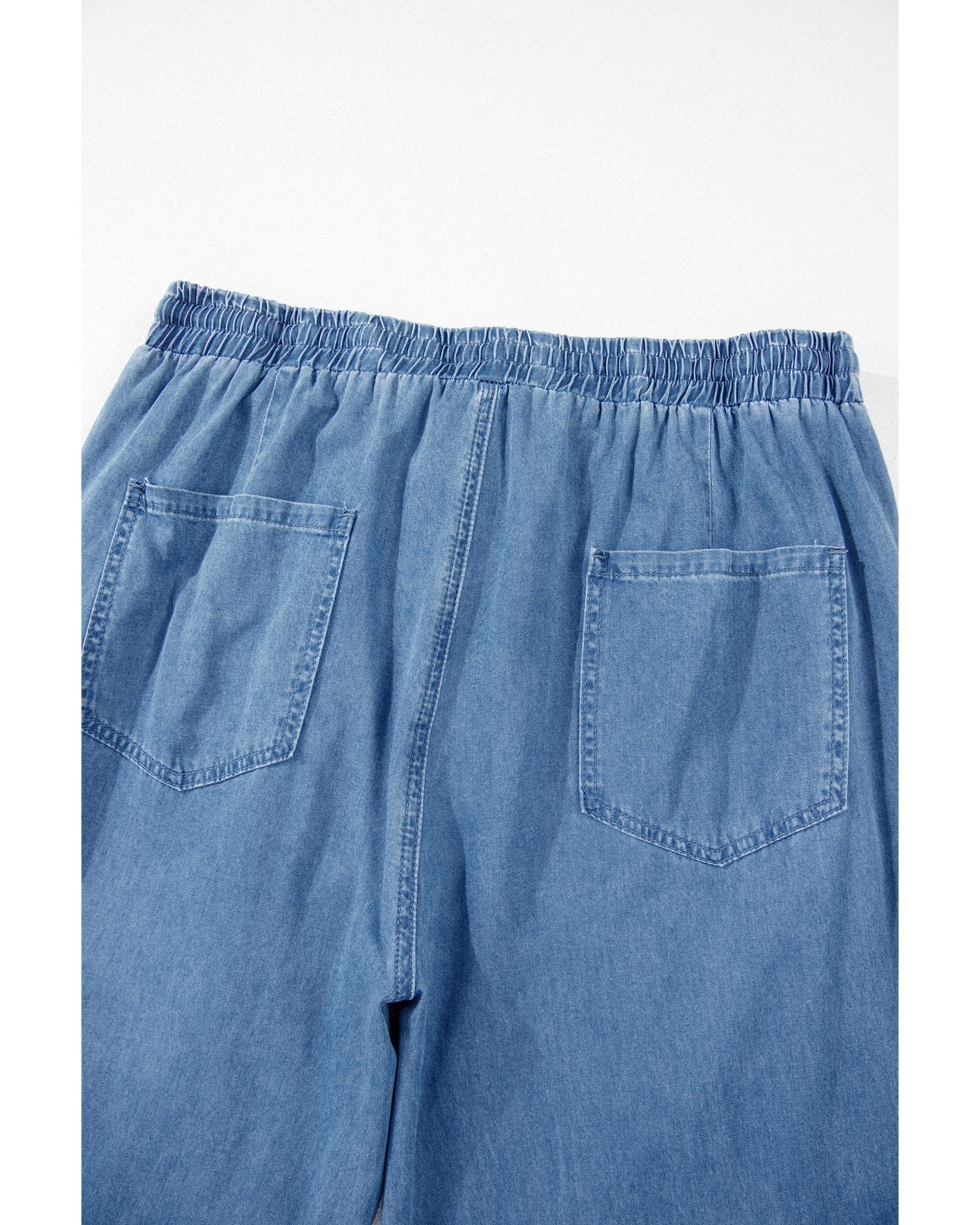 Dusk Blue Drawstring Waist Pocketed Plus Size Denim Joggers – 2X
